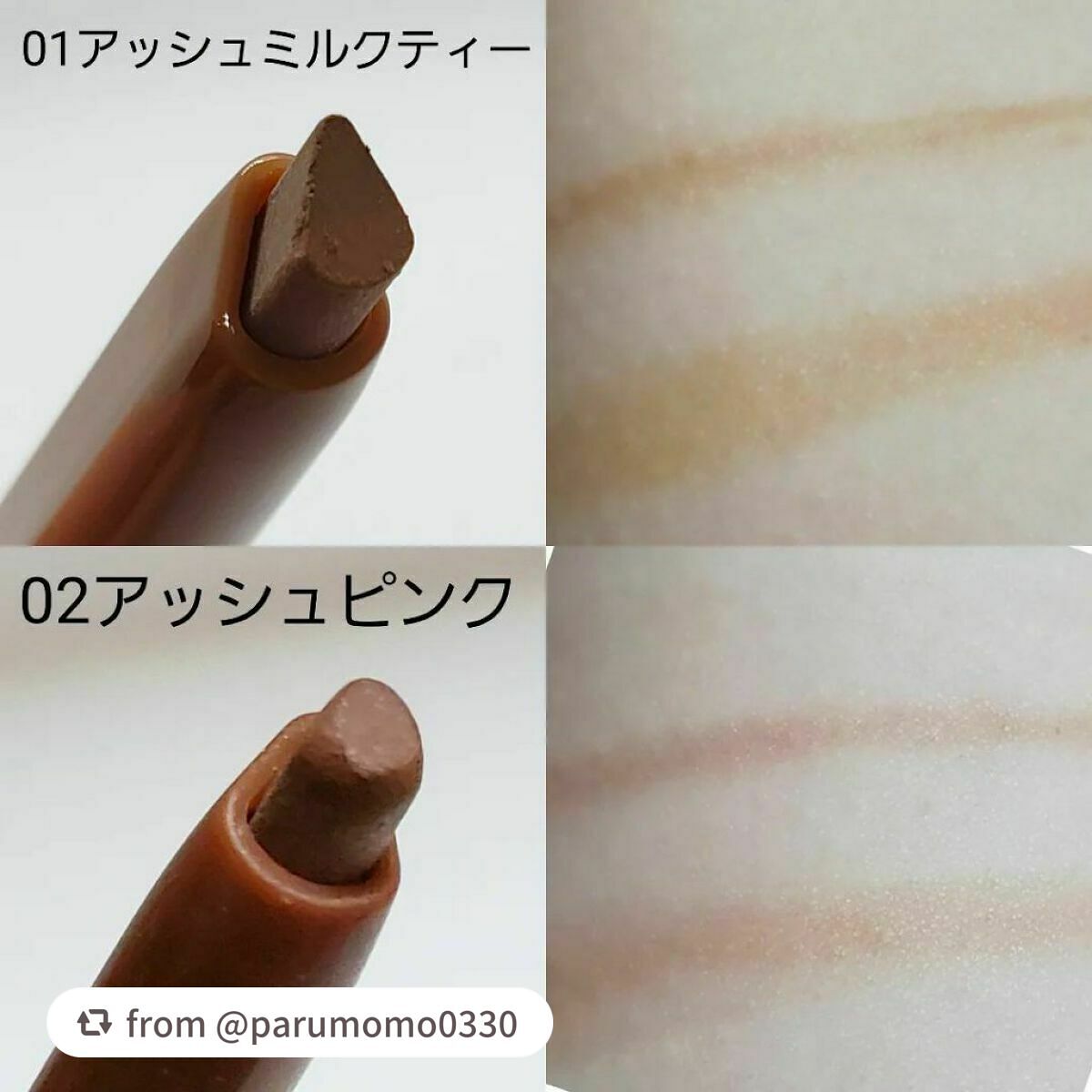- <01 アッシュミルクティー> ベヘン酸、モクロウ、トリエチルヘキサノイン、ダイマージリノール酸(フィトステリル/イソステアリル/セチル/ステアリル/ベヘニル)、トリ酢酸テトラステアリン酸スクロース、水添ヒマシ油、セスキイソステアリン酸ソルビタン、スクワラン、ラウロイルリシン、水酸化Al、トコフェロール、シリカ、セルロース、マイカ、酸化鉄、酸化チタン <02 アッシュピンク> ベヘン酸、モクロウ、トリエチルヘキサノイン、ダイマージリノール酸(フィトステリル/イソステアリル/セチル/ステアリル/ベヘニル)、トリ酢酸テトラステアリン酸スクロース、水添ヒマシ油、セスキイソステアリン酸ソルビタン、スクワラン、ラウロイルリシン、水酸化Al、トコフェロール、シリカ、セルロース、マイカ、酸化鉄、酸化チタン <03 アッシュブラウン> ベヘン酸、モクロウ、トリエチルヘキサノイン、ダイマージリノール酸(フィトステリル/イソステアリル/セチル/ステアリル/ベヘニル)、トリ酢酸テトラステアリン酸スクロース、水添ヒマシ油、セスキイソステアリン酸ソルビタン、スクワラン、ラウロイルリシン、水酸化Al、トコフェロール、シリカ、セルロース、マイカ、酸化鉄、酸化チタン <04 アッシュグレー> ベヘン酸、モクロウ、トリエチルヘキサノイン、ダイマージリノール酸(フィトステリル/イソステアリル/セチル/ステアリル/ベヘニル)、トリ酢酸テトラステアリン酸スクロース、水添ヒマシ油、セスキイソステアリン酸ソルビタン、スクワラン、ラウロイルリシン、水酸化Al、トコフェロール、シリカ、セルロース、マイカ、酸化鉄、酸化チタン <05 アッシュオリーブ> ベヘン酸、モクロウ、トリエチルヘキサノイン、ダイマージリノール酸(フィトステリル/イソステアリル/セチル/ステアリル/ベヘニル)、トリ酢酸テトラステアリン酸スクロース、水添ヒマシ油、セスキイソステアリン酸ソルビタン、スクワラン、ラウロイルリシン、水酸化Al、トコフェロール、シリカ、セルロース、マイカ、酸化鉄、酸化チタン