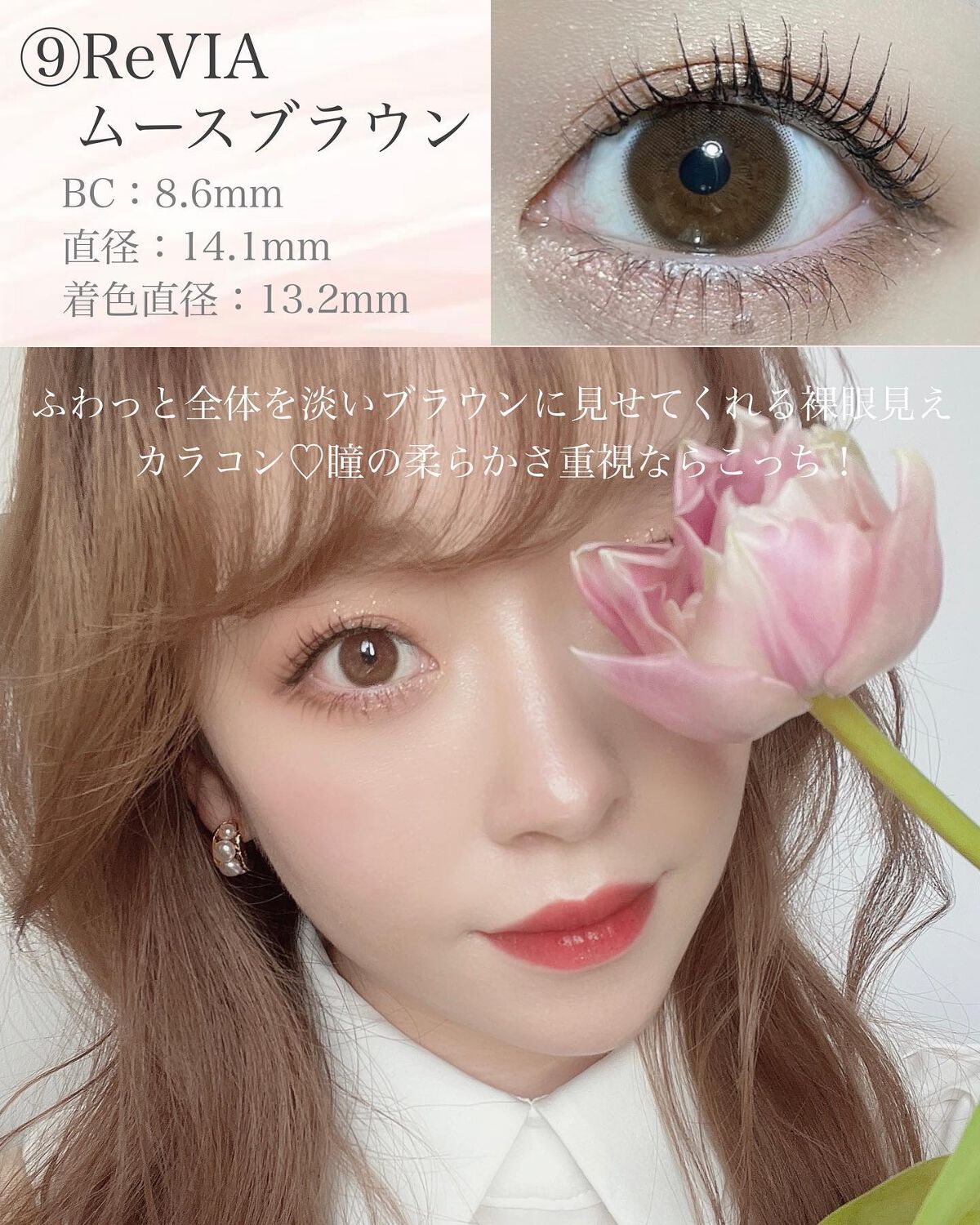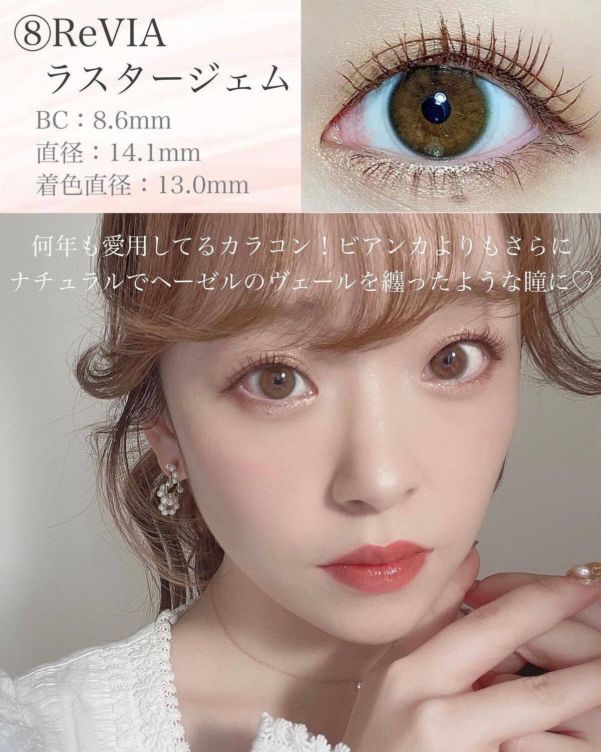 ReVIAReVIA1dayLusterGemラスタージェム【柔らかなニュアンス透明感】着色直径13.0mmでふんわり透明感なのでナチュラル着色直径が小さめなのでクールな印象になるかもオリーブがかったブラウンで光がいっぱい入るような感じのカラ...