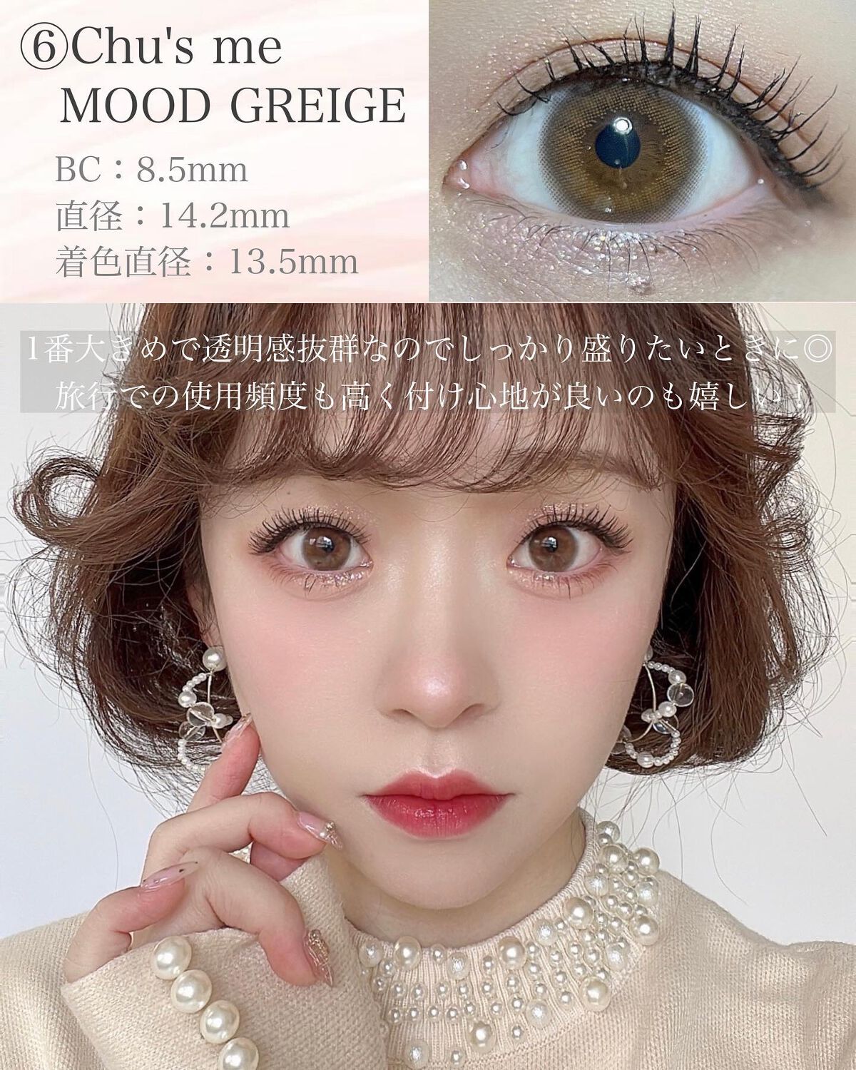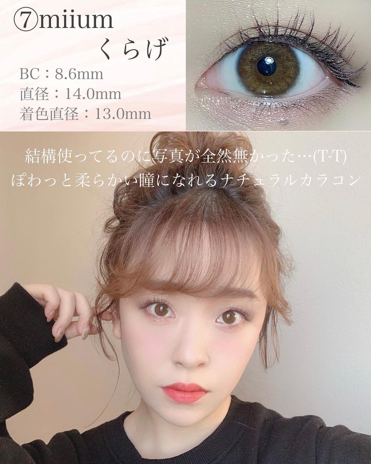 今年は裸眼メイクの日も増えて、愛用カラコンもだいぶサイズが小さく裸眼見え系になった✨ ナチュラルで裸眼っぽレンズなら②⑧⑨逆にちょっとデカ目なら④⑤⑦がお気に入り🌈 透明感があってふんわりしたフチでヴェールをまとう感じの瞳に仕上がるカラコンが好きやから、ぜひ参考にしてください\(^o^)/