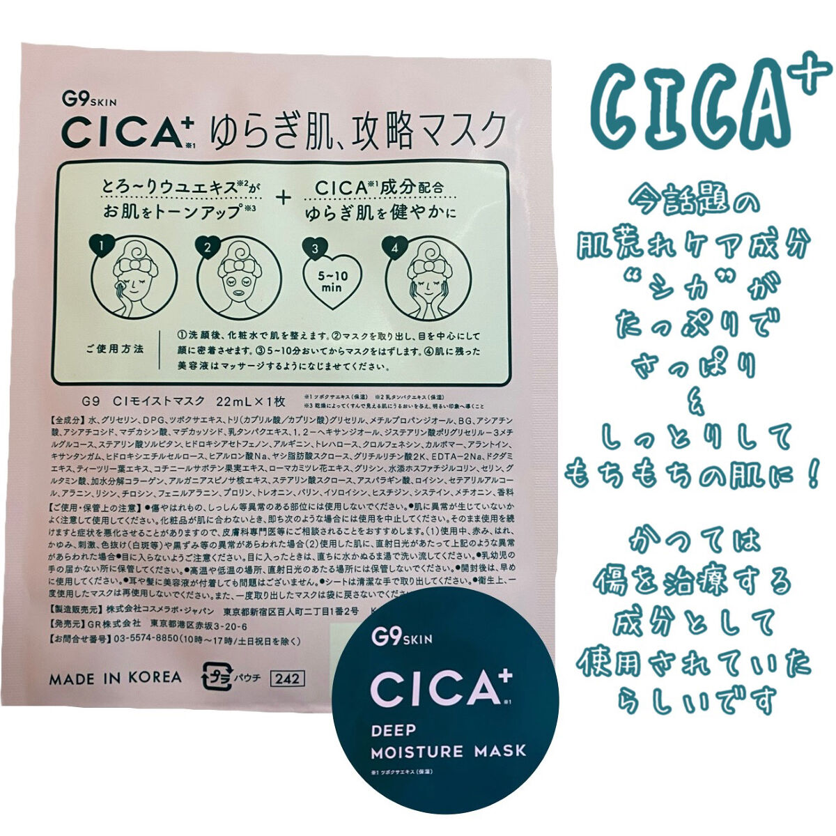 G9SKINラクトプラスディープモイスチャーマスク/シカプラスディープモイスチャーマスク#PR#提供COSCELLさまのおまけでいただきました!〜ラクトプラスディープモイスチャーマスク〜しっとりした使い心地で、保湿感は割とあって、ベタつきも少...