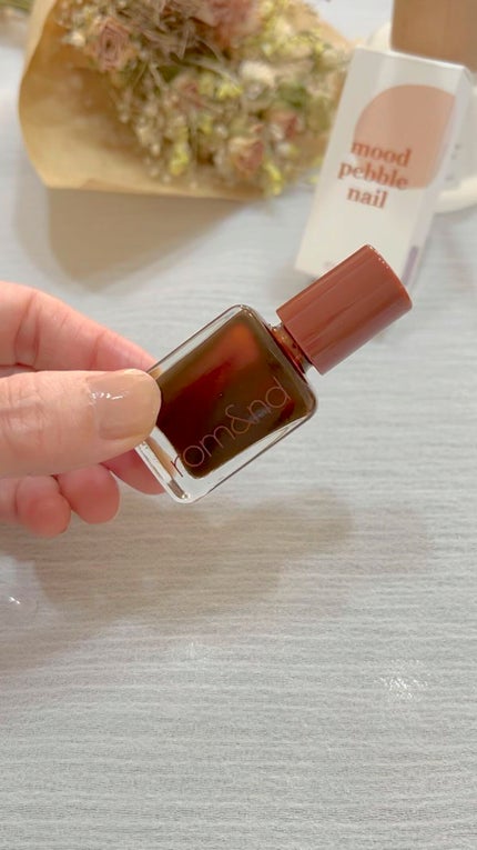 - 指先に玉石のような、ならかな光沢をとどめる。塗った瞬間から綺麗なツヤと光沢を維持し、重ねて塗っても透き通ったカラー感を鮮やかにとどめる、素早い乾燥力のナチュラルカラーネイル。「ロムアンド」の次世代型ネイルです。