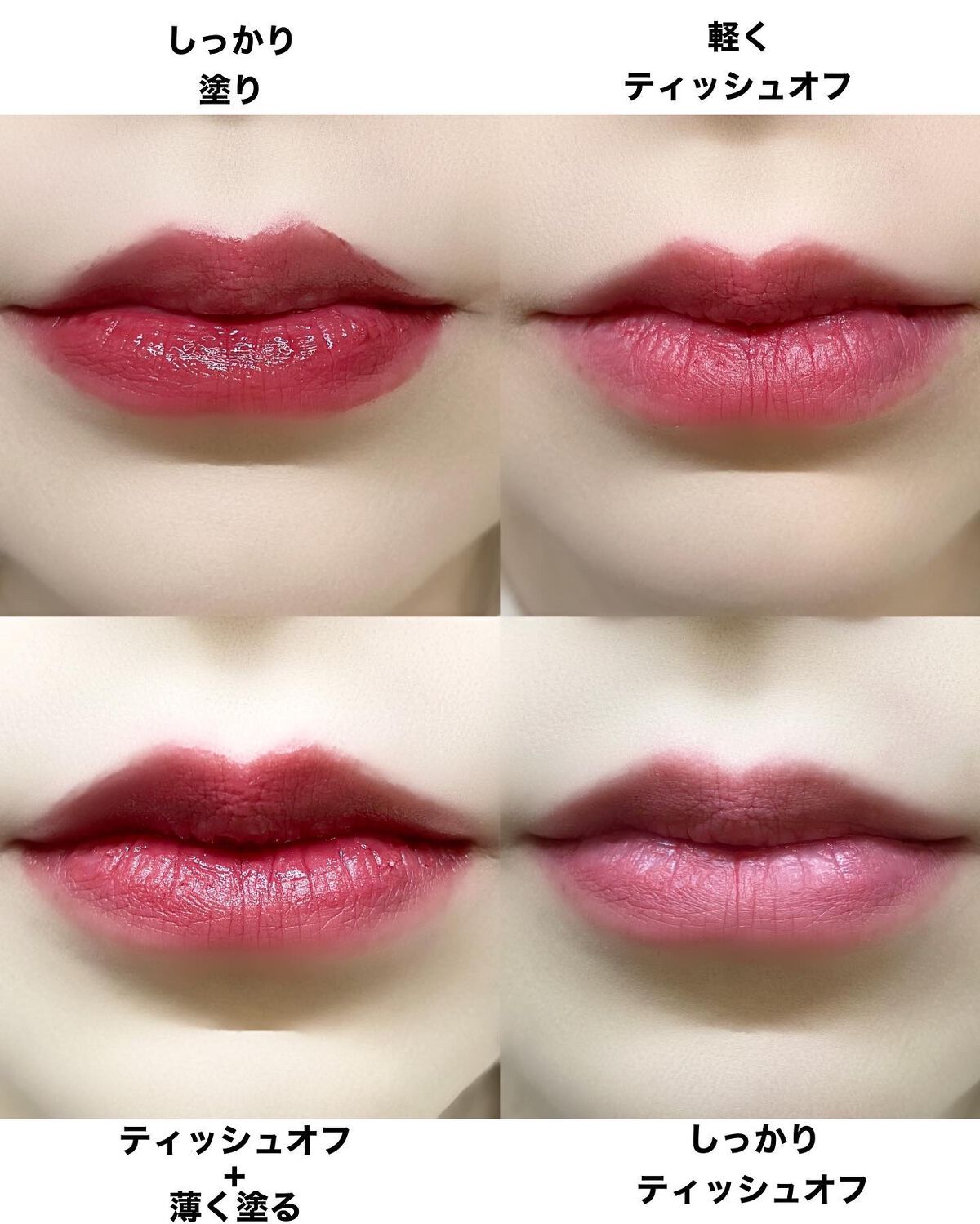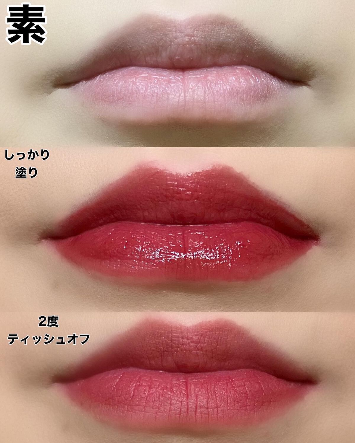 相変わらずオシャレなパケ❤️ このカラーがとてもキュート🥰 むっちり、と肌に密着しながらも伸びが良いです。 ぷるんとした質感❤️ 唇に塗ると、ほんのりスースー感。 香りはほぼないかな? カサついた私の薄い唇もふっくらナチュラルにプルンと ❤️ 透けるので、オーバーリップにする場合は重ね塗りでたっぷりした方が良さそう。 しっとりして👌 グロスのむちむち感はありますが、私には不快なベタベタ感ではなかったです。 また、ティッシュオフすると色は落ちちゃいますが、しっとり感は残ります❤️ 縦じわが目立ちにくくて良いです❤️ 他のリップと重ねるのも楽しみ🥰 1本持っておくと重宝しそうです☺️💕