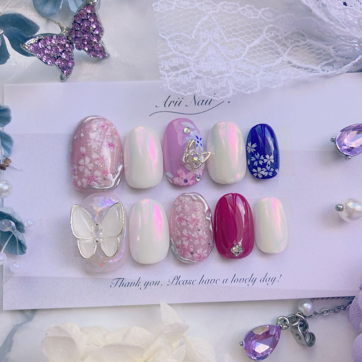 胡蝶しのぶイメージのグラデーションネイル相変わらず鬼滅の刃にハマっておりますりとです!胡蝶さんと言えば蝶々♡かわいい蝶を作ってみました♡💜ネイルレシピ💜①リキュールネイルの紫を半分だけ塗るすぐにリキュールネイルの水色を塗るグラデーションになる...