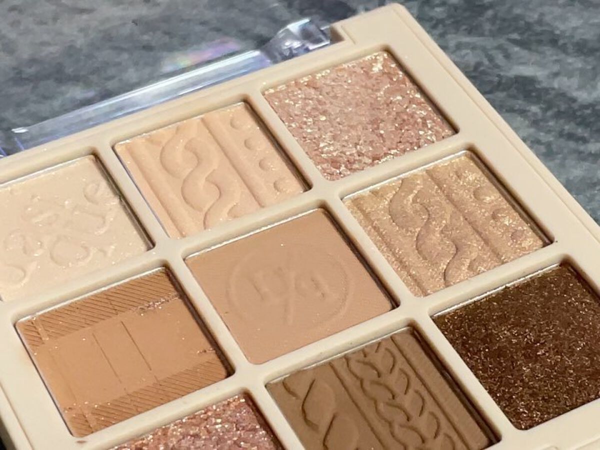 ふんわりベージュニットトーンにパール、チェックパターンを加えたウォームニットパレット🧶🎨 粉飛びもしにくく、グリッターも密着力抜群❤️🔥 ラメもキラッキラで最強に可愛い🐰 これ一つあれば思い通りのブラウンアイメイクができます☺︎ ぜひチェックしてみてね💫