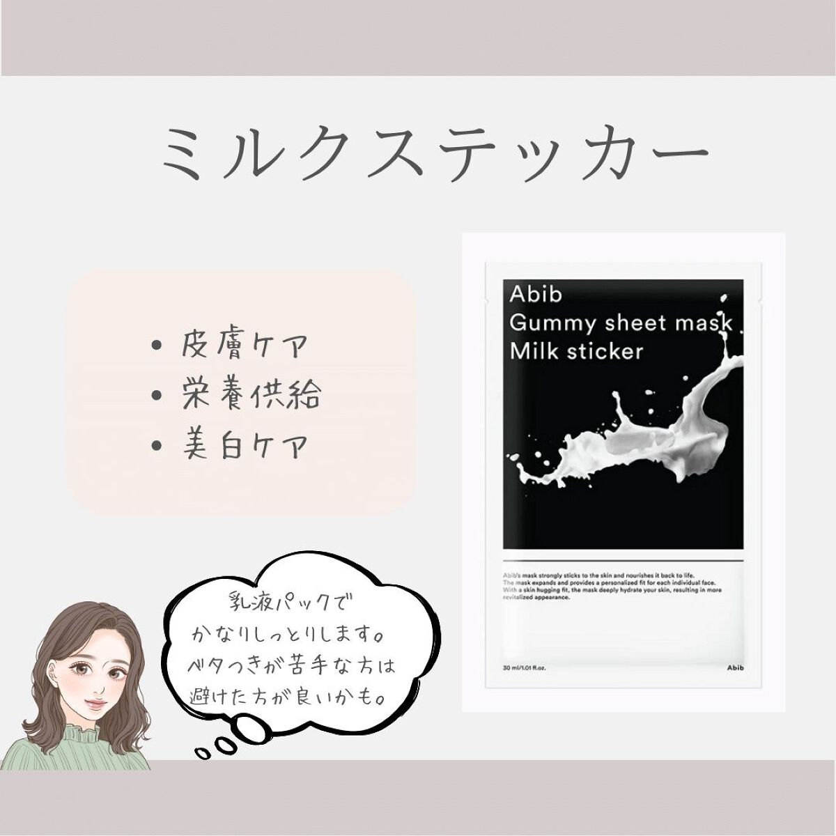 \Abibガムシートマスク比較4選/肌本来の美しさを追求できるどんな肌悩み、肌質にも合うマスクパックが見つかるはず🫶🍋ビタCステッカー →美白ケア🌱水分草ヒアルロンステッカー →水分供給ケア🥛ミルクステッカー →保湿弾力ケア🌿ドクダミステッカ...