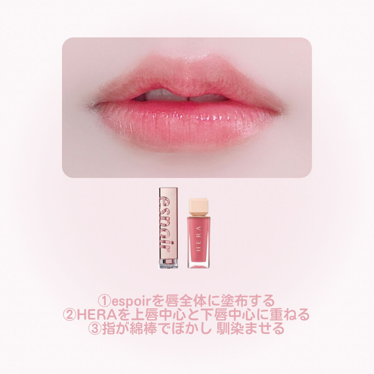 HERAのグロスです!プランパー効果がありますが、HERAのリップスティックより少し強めで、最初よピリピリ感があります! 重めのグロスで、唇をむっちりと見せてくれます💋 105 Curious Boy はラメが入ったピンク色で、既に持っているリップに重ねるとかわいい雰囲気になります! この色自体はあまり濃い色では無いのでほかのリップとの重ね付けがオススメです✨