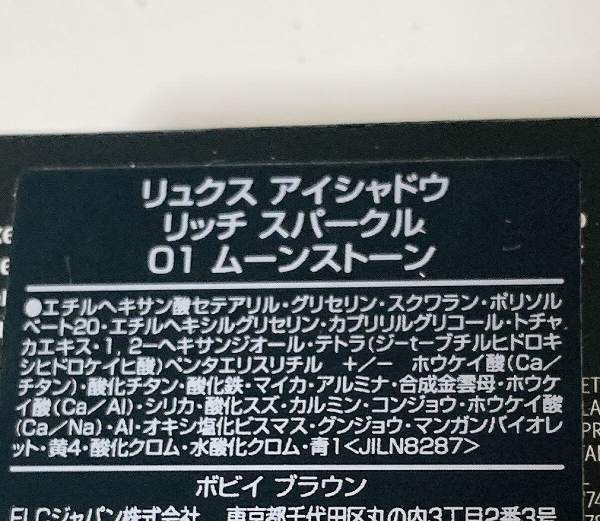 - <01 ヒートレイ(リッチ メタル)> エチルヘキサン酸セテアリル、グリセリン、スクワラン、ポリソルベート20、エチルヘキシルグリセリン、カプリリルグリコール、トチャカエキス、1,2-ヘキサンジオール、テトラ(ジ-t-ブチルヒドロキシヒドロケイヒ酸)ペンタエリスリチル +/- ホウケイ酸(Ca/チタン)、酸化チタン、酸化鉄、マイカ、アルミナ、合成金雲母、ホウケイ酸(Ca/Al)、シリカ、酸化スズ、カルミン、コンジョウ、ホウケイ酸(Ca/Na)、Al、オキシ塩化ビスマス、グンジョウ、マンガンバイオレット、黄4、酸化クロム、水酸化クロム、青1 <02 メルティングポイント(リッチ メタル)> エチルヘキサン酸セテアリル、グリセリン、スクワラン、ポリソルベート20、エチルヘキシルグリセリン、カプリリルグリコール、トチャカエキス、1,2-ヘキサンジオール、テトラ(ジ-t-ブチルヒドロキシヒドロケイヒ酸)ペンタエリスリチル +/- ホウケイ酸(Ca/チタン)、酸化チタン、酸化鉄、マイカ、アルミナ、合成金雲母、ホウケイ酸(Ca/Al)、シリカ、酸化スズ、カルミン、コンジョウ、ホウケイ酸(Ca/Na)、Al、オキシ塩化ビスマス、グンジョウ、マンガンバイオレット、黄4、酸化クロム、水酸化クロム、青1 <01 リキッドマーキュリー(リッチラスター) > エチルヘキサン酸セテアリル、グリセリン、スクワラン、ポリソルベート20、エチルヘキシルグリセリン、カプリリルグリコール、トチャカエキス、1,2-ヘキサンジオール、テトラ(ジ-t-ブチルヒドロキシヒドロケイヒ酸)ペンタエリスリチル +/- ホウケイ酸(Ca/チタン)、酸化チタン、酸化鉄、マイカ、アルミナ、合成金雲母、ホウケイ酸(Ca/Al)、シリカ、酸化スズ、カルミン、コンジョウ、ホウケイ酸(Ca/Na)、Al、オキシ塩化ビスマス、グンジョウ、マンガンバイオレット、黄4、酸化クロム、水酸化クロム、青1 <01 ムーンストーン(リッチ スパークル)> エチルヘキサン酸セテアリル、グリセリン、スクワラン、ポリソルベート20、エチルヘキシルグリセリン、カプリリルグリコール、トチャカエキス、1,2-ヘキサンジオール、テトラ(ジ-t-ブチルヒドロキシヒドロケイヒ酸)ペンタエリスリチル +/- ホウケイ酸(Ca/チタン)、酸化チタン、酸化鉄、マイカ、アルミナ、合成金雲母、ホウケイ酸(Ca/Al)、シリカ、酸化スズ、カルミン、コンジョウ、ホウケイ酸(Ca/Na)、Al、オキシ塩化ビスマス、グンジョウ、マンガンバイオレット、黄4、酸化クロム、水酸化クロム、青1 <インカンデスント(パワーパフ ガールズ コレクション限定パッケージ)> エチルヘキサン酸セテアリル、グリセリン、スクワラン、ポリソルベート20、エチルヘキシルグリセリン、カプリリルグリコール、トチャカエキス、1,2-ヘキサンジオール、テトラ(ジ-t-ブチルヒドロキシヒドロケイヒ酸)ペンタエリスリチル +/- ホウケイ酸(Ca/チタン)、酸化チタン、酸化鉄、マイカ、アルミナ、合成金雲母、ホウケイ酸(Ca/Al)、シリカ、酸化スズ、カルミン、コンジョウ、ホウケイ酸(Ca/Na)、Al、オキシ塩化ビスマス、グンジョウ、マンガンバイオレット、黄4、酸化クロム、水酸化クロム、青1 <メルティングポイント(パワーパフ ガールズ コレクション限定パッケージ)> エチルヘキサン酸セテアリル、グリセリン、スクワラン、ポリソルベート20、エチルヘキシルグリセリン、カプリリルグリコール、トチャカエキス、1,2-ヘキサンジオール、テトラ(ジ-t-ブチルヒドロキシヒドロケイヒ酸)ペンタエリスリチル +/- ホウケイ酸(Ca/チタン)、酸化チタン、酸化鉄、マイカ、アルミナ、合成金雲母、ホウケイ酸(Ca/Al)、シリカ、酸化スズ、カルミン、コンジョウ、ホウケイ酸(Ca/Na)、Al、オキシ塩化ビスマス、グンジョウ、マンガンバイオレット、黄4、酸化クロム、水酸化クロム、青1 <ムーンストーン(パワーパフ ガールズ コレクション限定パッケージ)> エチルヘキサン酸セテアリル、グリセリン、スクワラン、ポリソルベート20、エチルヘキシルグリセリン、カプリリルグリコール、トチャカエキス、1,2-ヘキサンジオール、テトラ(ジ-t-ブチルヒドロキシヒドロケイヒ酸)ペンタエリスリチル +/- ホウケイ酸(Ca/チタン)、酸化チタン、酸化鉄、マイカ、アルミナ、合成金雲母、ホウケイ酸(Ca/Al)、シリカ、酸化スズ、カルミン、コンジョウ、ホウケイ酸(Ca/Na)、Al、オキシ塩化ビスマス、グンジョウ、マンガンバイオレット、黄4、酸化クロム、水酸化クロム、青1 <02 ポイズンアイビー(リッチラスター)> エチルヘキサン酸セテアリル、グリセリン、スクワラン、ポリソルベート20、エチルヘキシルグリセリン、カプリリルグリコール、トチャカエキス、1,2-ヘキサンジオール、テトラ(ジ-t-ブチルヒドロキシヒドロケイヒ酸)ペンタエリスリチル +/- ホウケイ酸(Ca/チタン)、酸化チタン、酸化鉄、マイカ、アルミナ、合成金雲母、ホウケイ酸(Ca/Al)、シリカ、酸化スズ、カルミン、コンジョウ、ホウケイ酸(Ca/Na)、Al、オキシ塩化ビスマス、グンジョウ、マンガンバイオレット、黄4、酸化クロム、水酸化クロム、青1 <03 