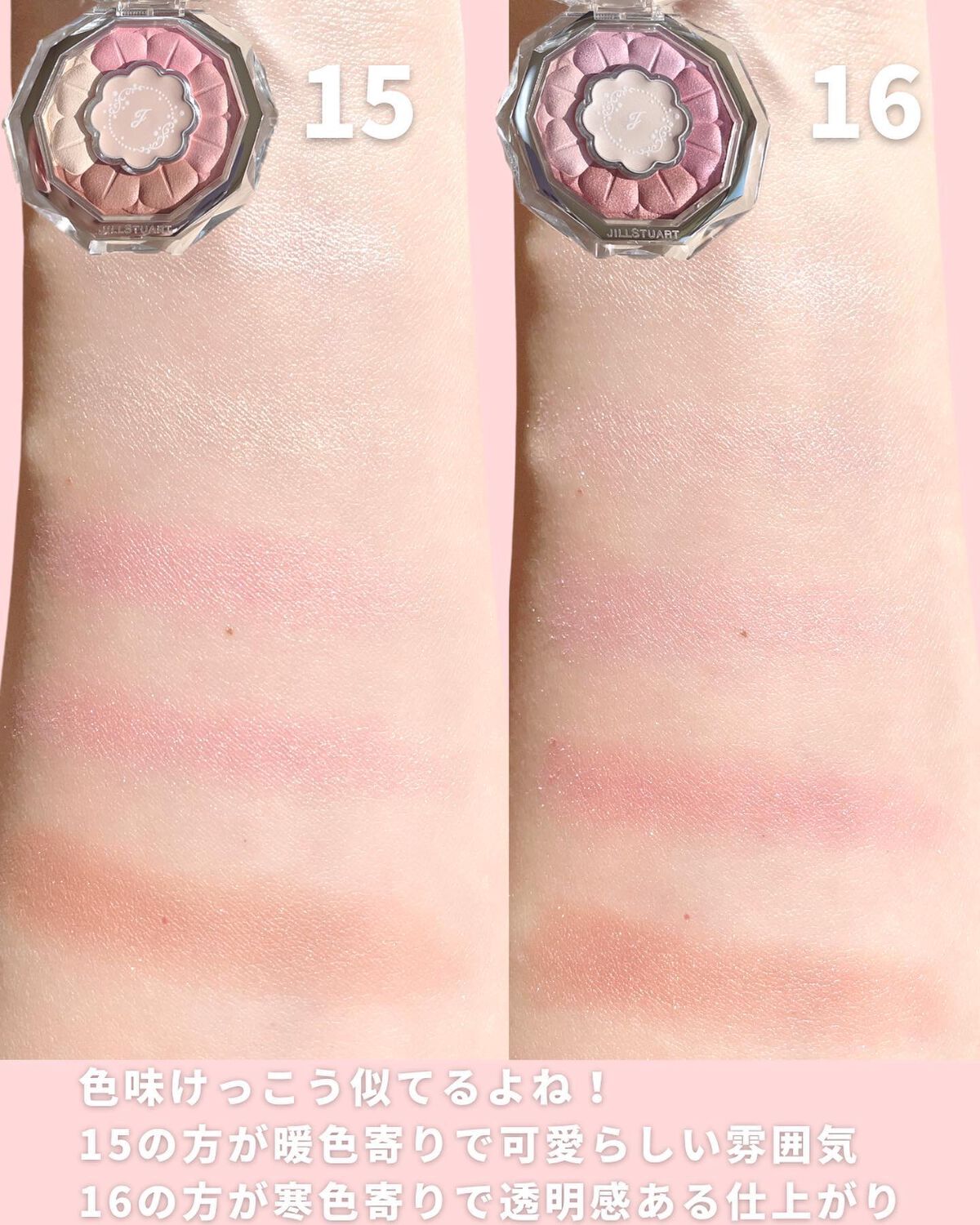 ルナソルのピンクはラメ感控えめなのでオフィスメイクにおすすめ🙆🏻♀️✨ CHANELはかなり万能だと思っていて、柔らかく仕上げればイエベ春の私ももちろんハマるし✨ ブランドごとにもちろん特徴がありますし、ピンクといってもパレットによって仕上がりはさまざま!