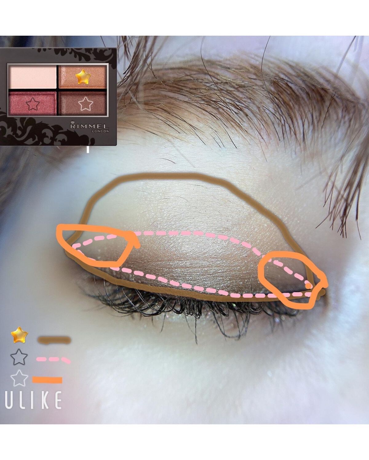 アイベースを塗った後、ウェッジを上下の瞼全体にのせる。(彫り深く見える) ウッドウィンクトを密集したブラシにとり、目の窪みまでのアイホールに磨くようにつける テンプティングを下瞼全体にのせた後、ウッドウィンクトを黒目の下にだけのせ涙袋を作る グラウンドブラウンと、エスプレッソを小さめのブラシで、黒目の上を抜かして目頭・目尻に二重幅でくの字に入れる(下目尻の1/3にも) ネイキッドランチを目頭と下瞼の目頭側にのせ抜け感をプラス! 目元が濃くなり血色感がないので、チークはピンクの偏光パールが入ったオレンジチークにして赤みのブラウンリップをつけるとバランスが取れたよっ☺️