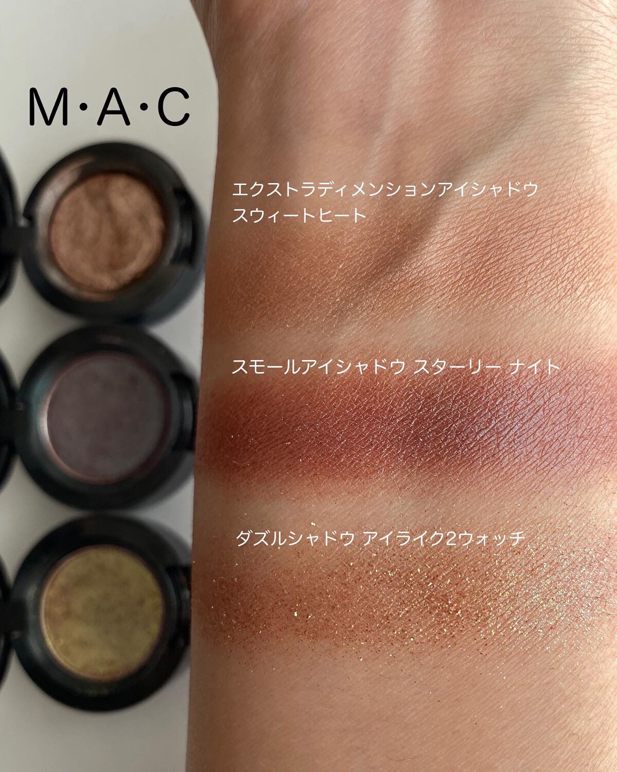 M・A・Cシングルアイシャドウの中でも推し推しの推したちを集めた最強デッキ❤️❤️ 大好きなMACの中から最推しを集めて迷わず盛れるメイクにしてみました😍💕 フィンファンはベースに優秀だし、ふんわりメイクが好きな方なら単色グラデもめちゃくちゃ可愛い🥰🥰 スウィートヒートはもう見ての通り(?)エクストラディメンション アイシャドウはツヤ感がほんっっとうに綺麗だから、組み合わせるとツヤツヤまぶたが作れるよ🥰