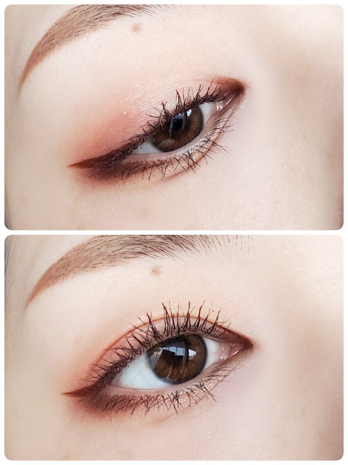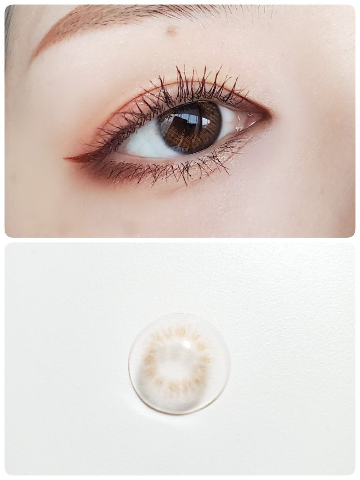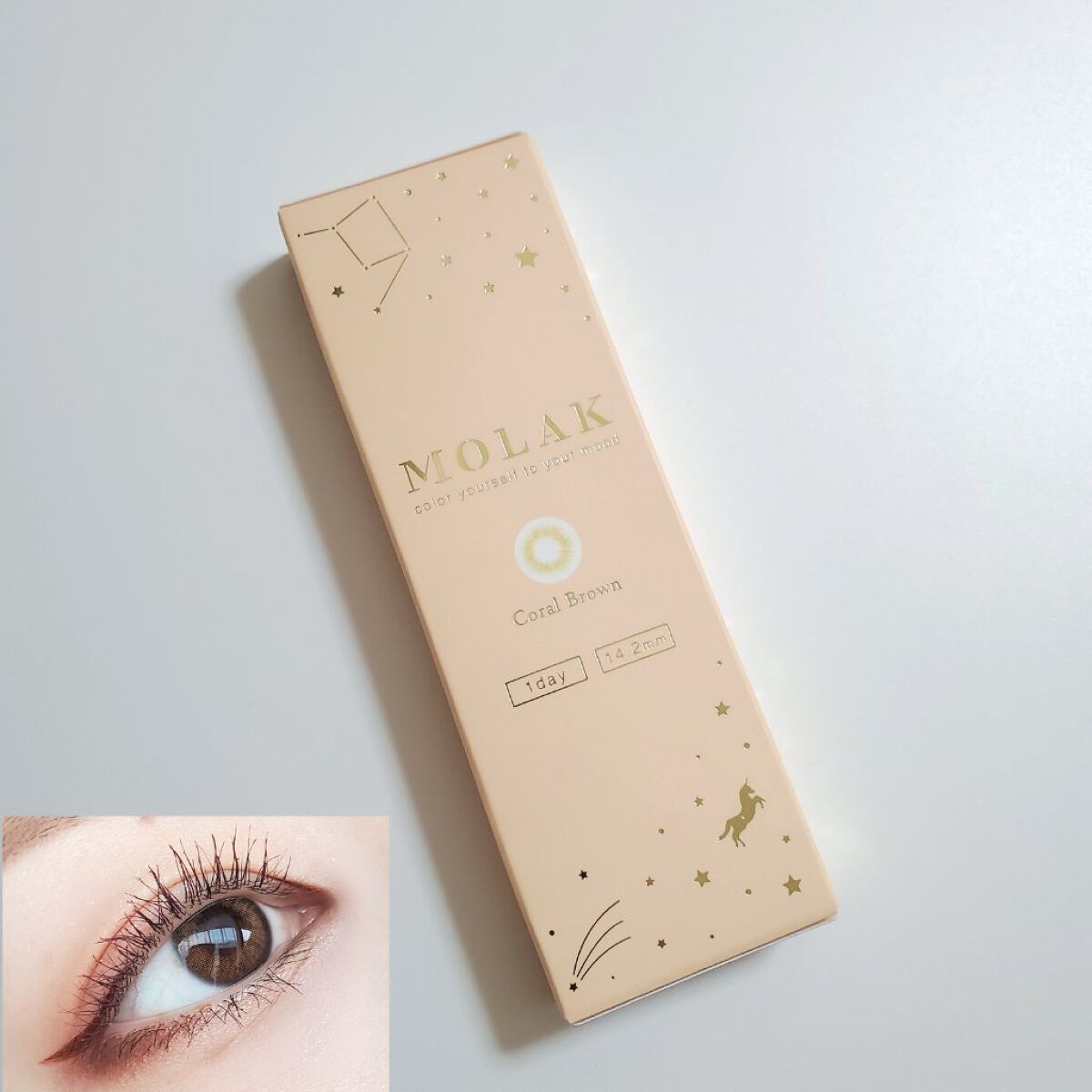 MOLAK 1day コーラルブラウン 11.9mmなのでとても小さい。素の自分の瞳をフチにして瞳の中の色を変えるって感じのカラコンです。 発色は強め。 大きさ的には自分のいつもの瞳と大きさが変わらないのでカラコンだとバレにくいと思います。 瞳の大きさを変えずに色だけ変えたい方におすすめ!