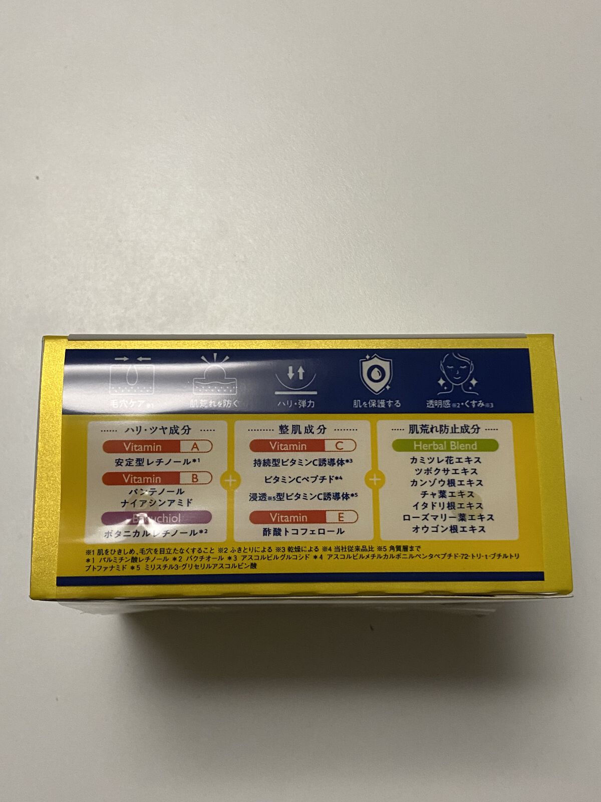 - <7枚入> 水、グリセリン、BG、アスコルビルグルコシド、ミリスチル3-グリセリルアスコルビン酸、アスコルビルメチルカルボニルペンタぺプチド-72-トリ-t-ブチルトリプトファナミド、バクチオール、バルミチン酸レチノール、ナイアシンアミド、パンテノール、ツボクサエキス、オウゴン根エキス、イタドリ根エキス、カンゾウ根エキス、チャ葉エキス、ローズマリー葉エキス、カミツレ花エキス、ポリクオタニウム-51、グリコシルトレハロース、加水分解水添デンプン、グリセリルグルコシド、酢酸トコフェロール、ピーナッツ油、水添レシチン、PEG-60水添ヒマシ油、PEG-40水添ヒマシ油、キサンタンガム、EDTA-2Na、クエン酸、クエン酸Na、フェノキシエタノール、メチルパラベン <28枚入> 水、グリセリン、BG、アスコルビルグルコシド、ミリスチル3-グリセリルアスコルビン酸、アスコルビルメチルカルボニルペンタぺプチド-72-トリ-t-ブチルトリプトファナミド、バクチオール、バルミチン酸レチノール、ナイアシンアミド、パンテノール、ツボクサエキス、オウゴン根エキス、イタドリ根エキス、カンゾウ根エキス、チャ葉エキス、ローズマリー葉エキス、カミツレ花エキス、ポリクオタニウム-51、グリコシルトレハロース、加水分解水添デンプン、グリセリルグルコシド、酢酸トコフェロール、ピーナッツ油、水添レシチン、PEG-60水添ヒマシ油、PEG-40水添ヒマシ油、キサンタンガム、EDTA-2Na、クエン酸、クエン酸Na、フェノキシエタノール、メチルパラベン