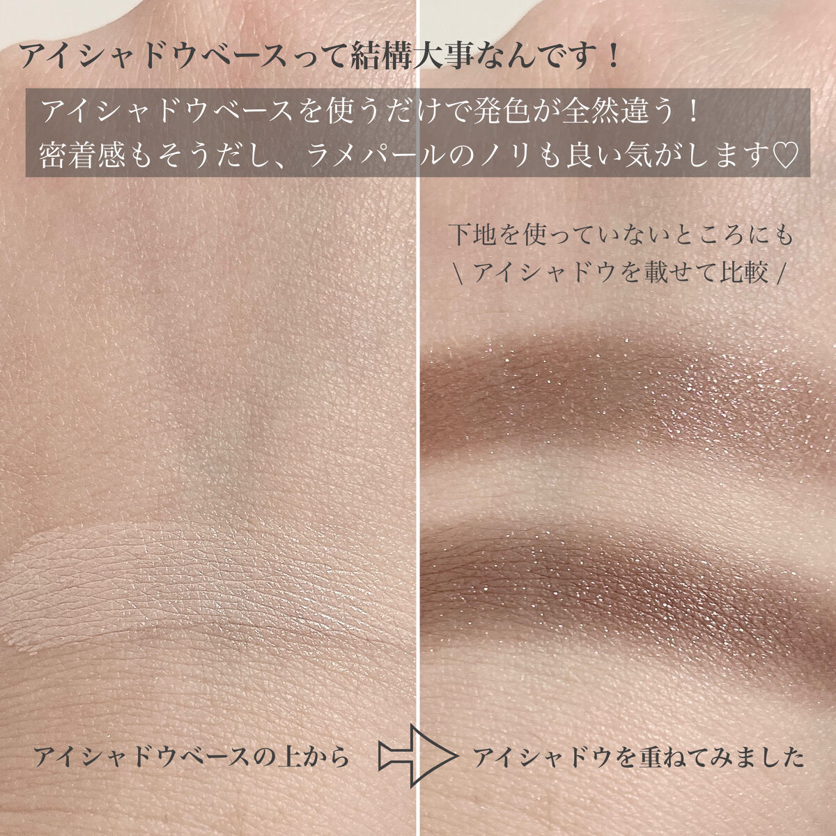 - アイシャドウの発色・輝きを長時間キープ。スキンケアするアイシャドウ下地です。 ◆アイシャドウの発色と色持ちを格段にアップさせます。 ヌーディカラーやパール入りシャドウも密着してヨレません。 ◆まぶたをケアする美容液成分贅沢 in。 ◆くすみを均一にカバーし自然にトーンアップします。