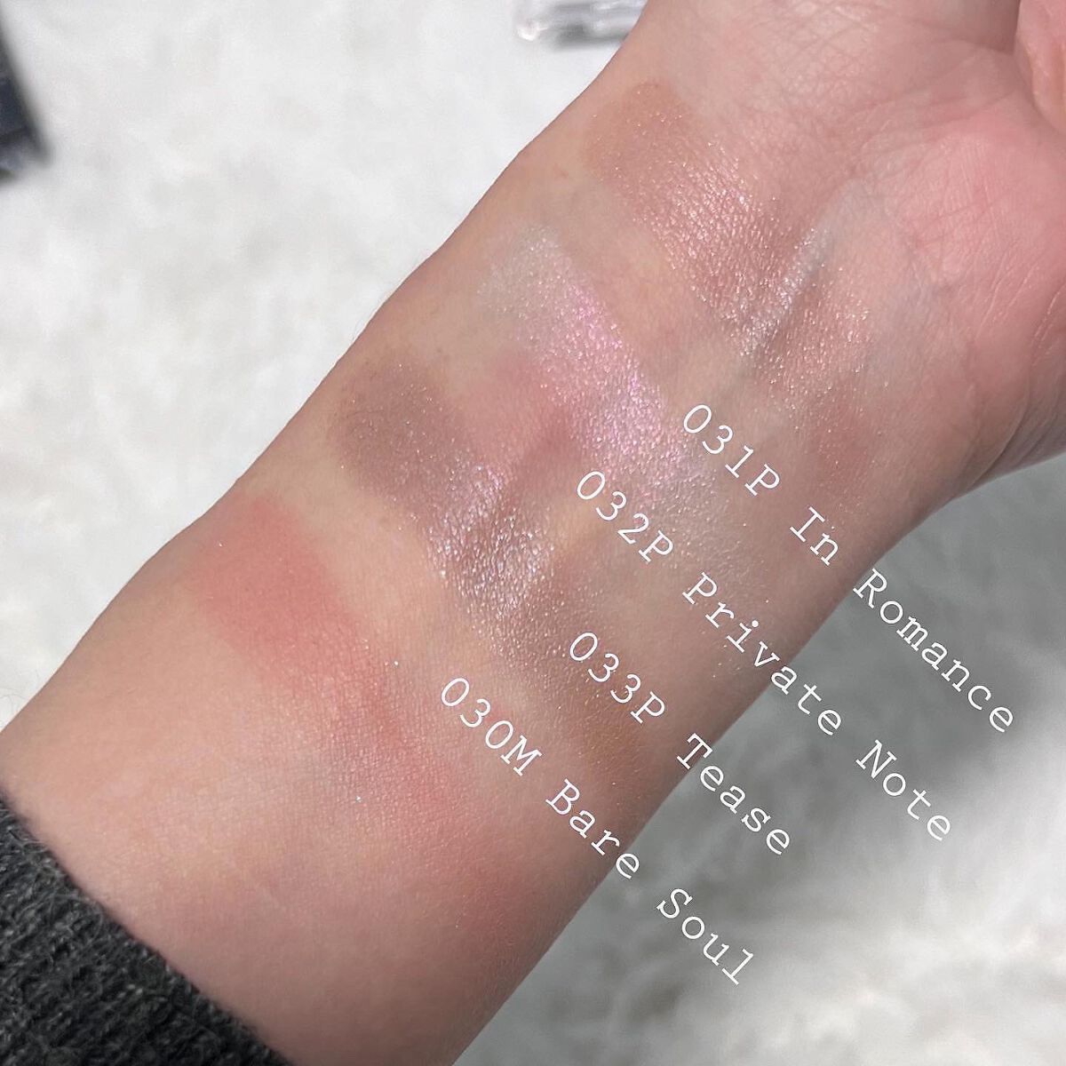 - <001P Cotton> タルク、ミネラルオイル、水添ポリイソブテン、セスキステアリン酸ソルビタン、トコフェロール、イソドデカン、酸化スズ、グンジョウ、マイカ、酸化チタン、酸化亜鉛、酸化鉄、硫酸Ba <002P Blondy> タルク、ミネラルオイル、水添ポリイソブテン、合成金雲母、セスキステアリン酸ソルビタン、メタクリル酸メチルクロスポリマー、トコフェロール、イソドデカン、トリエトキシカプリリルシラン、ラウリン酸亜鉛、酸化スズ、グンジョウ、マイカ、酸化チタン、酸化亜鉛、酸化鉄 <003P Christmas Love> タルク、リンゴ酸ジイソステアリル、ジメチコン、セスキステアリン酸ソルビタン、ヘキサ(ヒドロキシステアリン酸/ステアリン酸/ロジン酸)ジペンタエリスリチル、メタクリル酸メチルクロスポリマー、トコフェロール、イソドデカン、トリエトキシカプリリルシラン、合成金雲母、酸化スズ、水添ポリイソブテン、グンジョウ、マイカ、酸化チタン、酸化亜鉛、酸化鉄 <004P Private Beach> 合成金雲母、ミネラルオイル、水添ポリイソブテン、タルク、ホウケイ酸(Ca/Al)、セスキステアリン酸ソルビタン、トコフェロール、イソドデカン、酸化スズ、グンジョウ、マイカ、酸化チタン、酸化亜鉛、酸化鉄 <005P Sandcastles> ミネラルオイル、水添ポリイソブテン、タルク、合成金雲母、ホウケイ酸(Ca/Al)、セスキステアリン酸ソルビタン、トコフェロール、イソドデカン、酸化スズ、グンジョウ、マイカ、酸化チタン、酸化亜鉛、酸化鉄 <006P Love Affair> ミネラルオイル、水添ポリイソブテン、タルク、セスキステアリン酸ソルビタン、メタクリル酸メチルクロスポリマー、トコフェロール、イソドデカン、トリエトキシカプリリルシラン、合成金雲母、酸化スズ、グンジョウ、マイカ、酸化チタン、酸化亜鉛、酸化鉄 <007P Dolce Vita> ホウケイ酸(Ca/Al)、リンゴ酸ジイソステアリル、ジメチコン、タルク、合成金雲母、セスキステアリン酸ソルビタン、ヘキサ(ヒドロキシステアリン酸/ステアリン酸/ロジン酸)ジペンタエリスリチル、メタクリル酸メチルクロスポリマー、トコフェロール、イソドデカン、トリエトキシカプリリルシラン、酸化スズ、水添ポリイソブテン、グンジョウ、マイカ、酸化チタン、酸化亜鉛、酸化鉄 <008P Boy Toy> タルク、リンゴ酸ジイソステアリル、ジメチコン、合成金雲母、セスキステアリン酸ソルビタン、ヘキサ(ヒドロキシステアリン酸/ステアリン酸/ロジン酸)ジペンタエリスリチル、トコフェロール、イソドデカン、ホウケイ酸(Ca/Na)、酸化スズ、水添ポリイソブテン、グンジョウ、マイカ、酸化チタン、酸化亜鉛、酸化鉄 <009P Nostalgia> タルク、ミネラルオイル、水添ポリイソブテン、合成金雲母、ホウケイ酸(Ca/Al)、セスキステアリン酸ソルビタン、トコフェロール、イソドデカン、酸化スズ、グンジョウ、マイカ、酸化チタン、酸化亜鉛、酸化鉄 <010P Flash Back> ミネラルオイル、水添ポリイソブテン、タルク、セスキステアリン酸ソルビタン、トコフェロール、イソドデカン、グンジョウ、マイカ、酸化チタン、酸化亜鉛、酸化鉄 <011P Engaged> ミネラルオイル、水添ポリイソブテン、タルク、合成金雲母、セスキステアリン酸ソルビタン、メタクリル酸メチルクロスポリマー、トコフェロール、イソドデカン、トリエトキシカプリリルシラン、酸化スズ、グンジョウ、マイカ、酸化チタン、酸化亜鉛、酸化鉄 <012P My Baby> タルク、ミネラルオイル、水添ポリイソブテン、メタクリル酸メチルクロスポリマー、合成金雲母、ホウケイ酸(Ca/Al)、セスキステアリン酸ソルビタン、トコフェロール、イソドデカン、トリエトキシカプリリルシラン、酸化スズ、グンジョウ、マイカ、酸化チタン、酸化亜鉛、酸化鉄 <013P Material Girl> タルク、ミネラルオイル、水添ポリイソブテン、合成金雲母、セスキステアリン酸ソルビタン、トコフェロール、イソドデカン、ハイドロゲンジメチコン、酸化スズ、カルミン、グンジョウ、マイカ、酸化チタン、酸化亜鉛、酸化鉄 <014P Cry Baby> 合成金雲母、タルク、リンゴ酸ジイソステアリル、ジメチコン、ホウケイ酸(Ca/Al)、セスキイソステアリン酸ソルビタン、ヘキサ(ヒドロキシステアリン酸/ステアリン酸/ロジン酸)ジペンタエリスリチル、トコフェロール、イソドデカン、酸化スズ、水酸化Al、水添ポリイソブテン、グンジョウ、マイカ、酸化チタン、酸化亜鉛、酸化鉄 <015P Shell Garden> 合成金雲母、タルク、ミネラルオイル、水添ポリイソブテン、セスキステアリン酸ソルビタン、トコフェロール、イソドデカン、酸化スズ、グンジョウ、マイカ、酸化チタン、酸化亜鉛、酸化鉄 <016P Midnight Drive> タルク、合成金雲母、ジメチコン、リンゴ酸ジイソステアリル、セスキステアリン酸ソルビタン、ヘキサ(ヒドロキシステアリン酸/ステアリン酸/ロジン酸)ジペンタエリスリチル、トコフェロール、イソドデカン、酸化スズ、水添ポリイソブテン、グンジョウ、マイカ、酸化チタン、酸化亜鉛、酸化鉄 <017