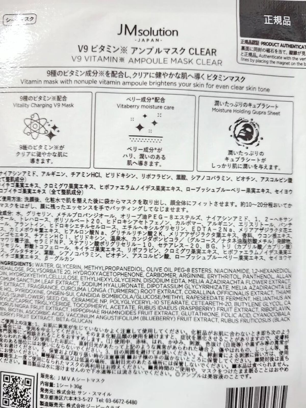 JMsolution V9 ビタミン アンプルマスク クリア | 1,100円 |