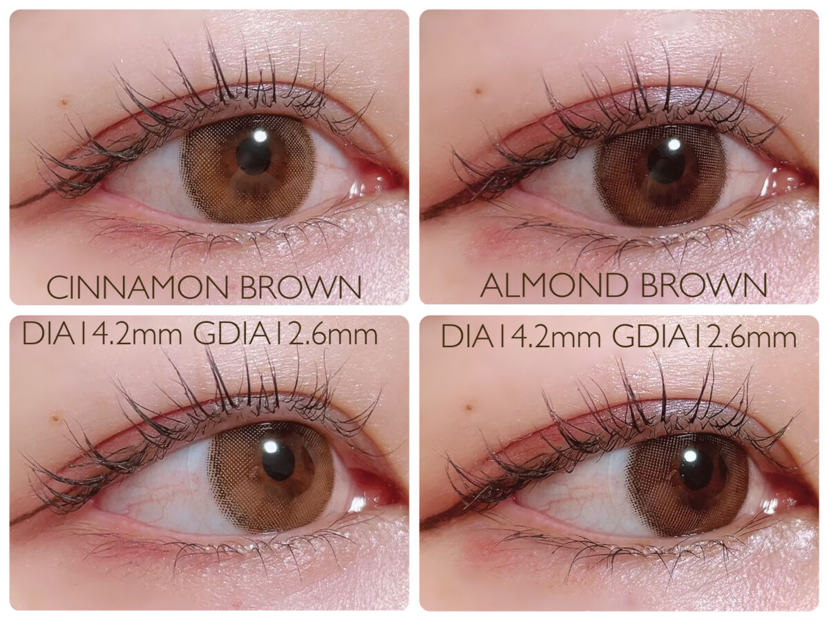 - ※2025年6月以降、商品パッケージ裏面・側面の一部表記を順次変更いたします。尚、これにかかる商品の交換・返品は承っておりません。 ”欲しいのは 大人の透明感”がコンセプト。 黒目のサイズはそこまで変えず、質感だけをナチュラルにキラリと整えてくれるレンズデザインが特徴となっています。 誰でも“裸眼の綺麗な人”に見せてくれる、全2色のラインナップです。 CINNAMON BROWN(シナモンブラウン) DIA 14.2mm / 着色直径12.6mm 透明感のあるシナモンカラー×細フチデザイン 瞳、本来の美しさを引き立てる裸眼風レンズ ALMOND BROWN(アーモンドブラウン)DIA 14.2mm / 着色直径12.6mm 温かみのあるアーモンドカラー×細フチデザイン 瞳、本来の美しさを引き立てる裸眼風レンズ GEM CHOCOLAT(ジェムショコラ)DIA:14.2mm / 着色直径:12.8mm 光を取り込むショコラブラウンカラー×瞳に馴染むふんわりぼかしフチデザイン 瞳、本来の美しさを引き立てる裸眼風レンズ カラーコンタクトレンズの不適正使用による眼障害の危険性等などがあります。 ●コンタクトレンズは高度管理医療機器です。不十分な洗浄・消毒など不適切なケアや、長時間・交換期間を超えた装用により、アレルギー性結膜炎、角膜感染症、角膜潰瘍等の重篤な眼障害が発生する危険性があります ●ご使用前に取扱説明書を確認してください 使用上の留意事項 ●眼科医院等を受診してからお求めください ●眼に異常を感じたら直ちにレンズ使用を中止し、お近くの眼科等で診察を受けてください ●医師の指示にしたがってご使用ください ●コンタクトレンズを装用する場合、自覚症状がなくても、眼科医院等での定期検査を受けてください ●レンズに不具合がある場合は使用しないでください