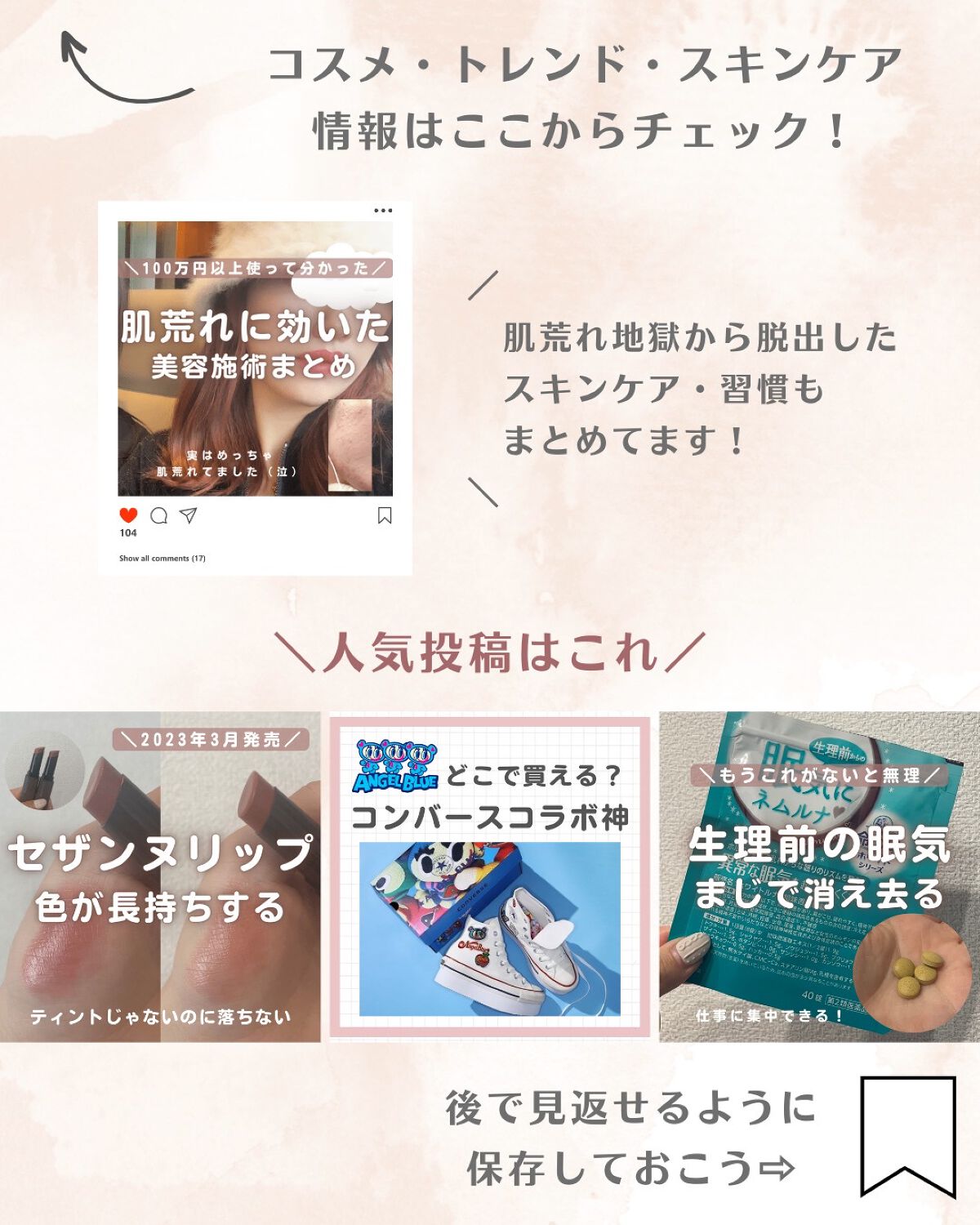 レチノールはビタミンAのことで、コラーゲン生成を促進:シワ・たるみ改善、肌のターンオーバー促進:シミ予防、皮脂分泌を抑える:毛穴閉じる、ニキビ改善の効果が得られるので、今話題になっています🌟 ただレチノール配合商品は濃度が異なっていて高濃度のものだとヒリヒリしてしまうことも😭 敏感肌さんや、肌荒れ中の方は要注意です! まずは低濃度のレチノールから始めるか週1回から様子を見て使い始めるのが◎ レチノールは紫外線に弱い成分です。必ず夜のスキンケアに取り入れましょう!
