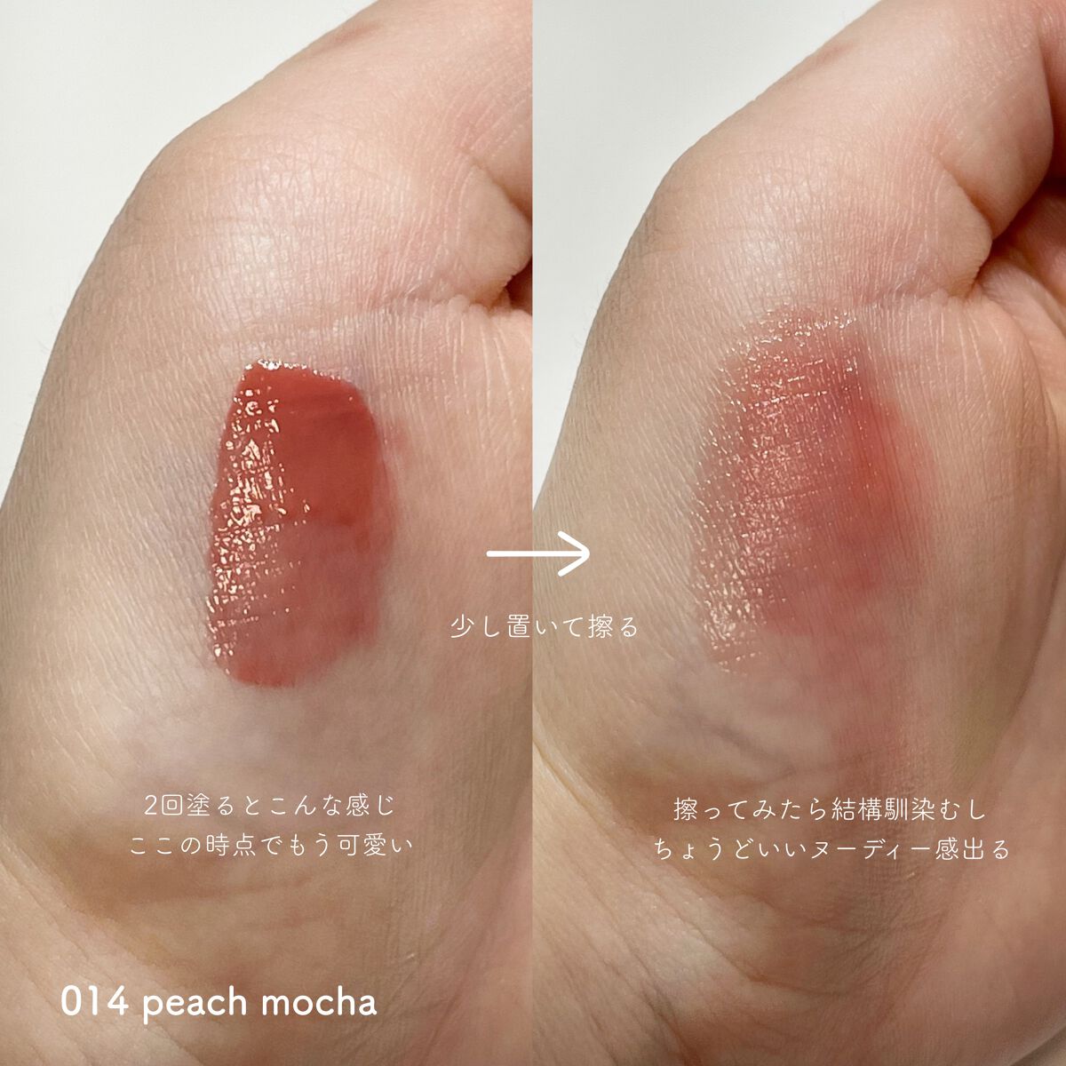 上品で抜け感のあるピーチヌードカラー🍑 塗った瞬間から可愛い🤤ふわふわした淡い発色で、桃のような甘くて柔らかいヌードカラーが本来の唇の色に馴染みぷるっと透け感のある仕上がりに🫧 少しくすみも感じられる、可愛いカラーです☺︎ ぜひチェックしてみてね💫
