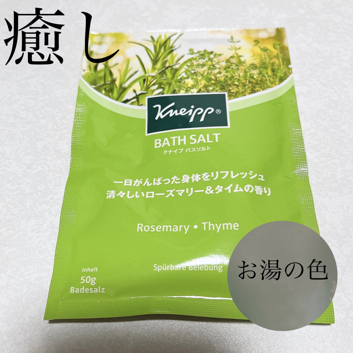 クナイプバスソルトローズマリー&タイムの香り 50g大好きなクナイプのバスソルト薄いグリーンのお湯の色と、ハーブのような清々しい香りでリラックスできます。天然岩塩と植物オイル配合で体の芯から温まるし、気持ちが穏やかになりました。#バスソルト#...