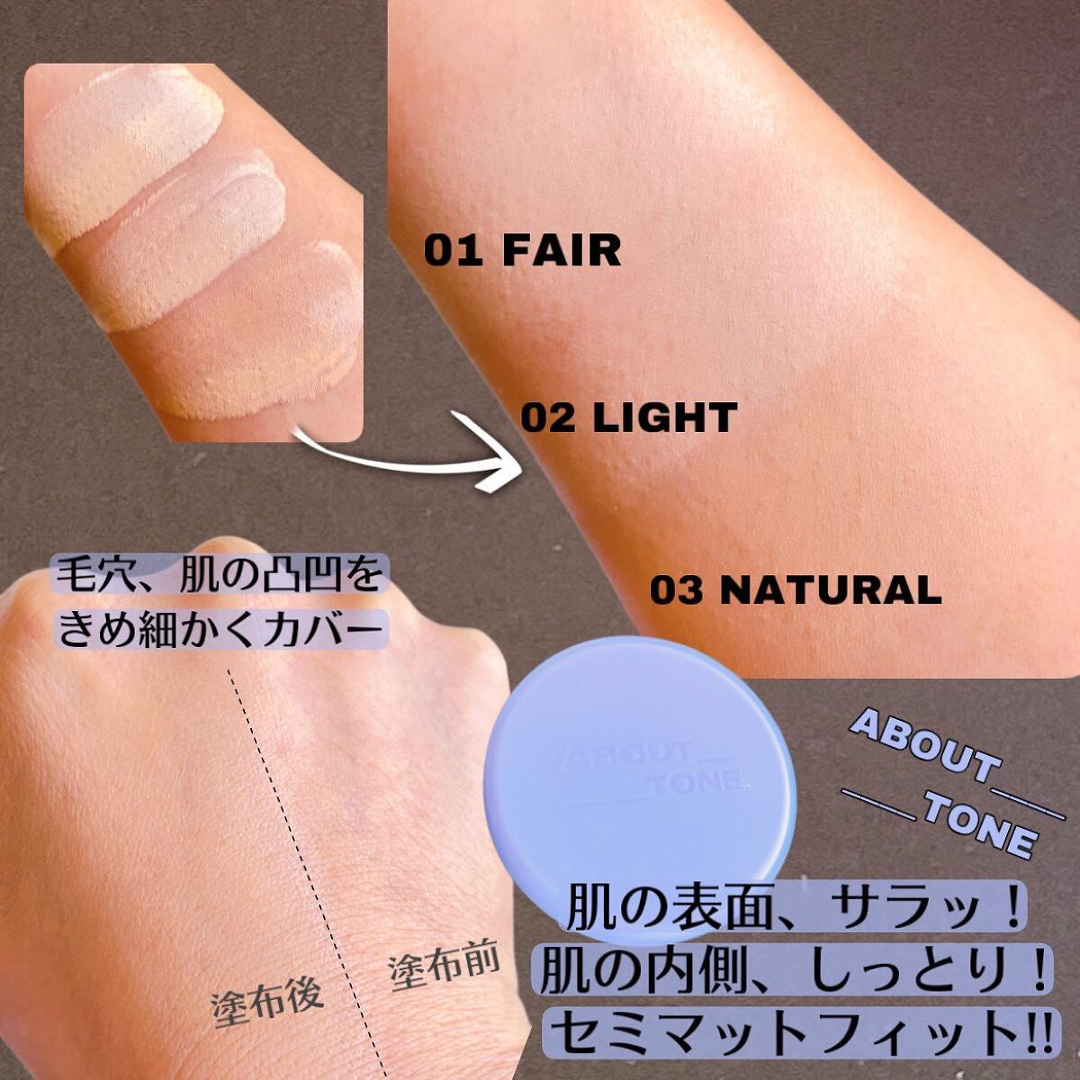 ABOUTTONEãããã·ã³ã°ãããããŒããã¡ã³ããŒã·ã§ã³è©ŠäŸåã§01.02.03é ãã®ã§è²å³ãåãã£ãŠé ããã°ïŒæ£çŽ01ãš02ã®éãã¯ãããŸã§ããããªãã£ãã®ã§ããã03ã ãã¯é»ããã¿ã²ã©ãããŠäœ¿ããªããšæã£ããããšå°ãç§ã®èã§ã¯ä¹Ÿç¥ããã®...