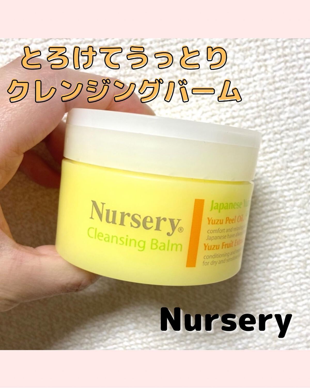 ナーセリーはエステサロン生まれ♡ スキンケアのファーストステップ、クレンジングって、1日頑張った自分を解放してあげる時間でもあると思っているので、 ナーセリーのクレンジングバームは、可愛いカラーはもちろん、香りがめっっっっっちゃいいの‼️ 今回使っている「クレンジングバームゆず」も どのアイテムも裏切らないこの香りがナーセリーの一番好きなポイントです。 メイクも優しくしっかり落としてくれるし、W洗顔不要なのもありがたいです💕
