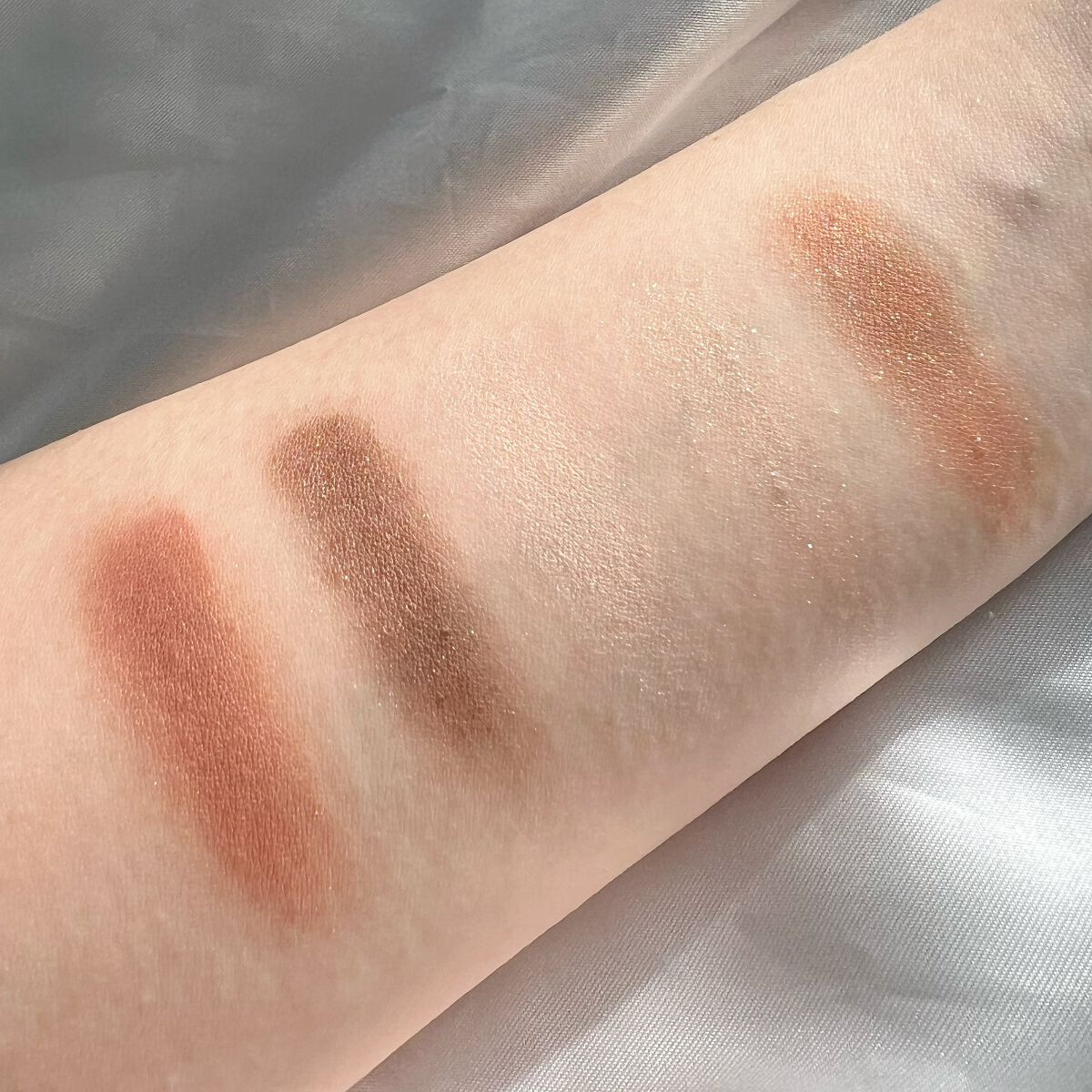04 ザ・ナラティブ はクールトーンの配色で グレーカラーとかくすんだカラーが多くて 組み合わせは昨日紹介した03より難しいかもしれません。 ヒンスいつも通りの滑らかで発色が良い ただしこのパレットのポイントカラーの ブラックカラーは濃い色なので、キレイに伸ばせないです😢 一番左上はクリームタイプのアイシャドウです 恐らくアイシャドウベースだと思います。 今回の新色03と04 個人的には03の方が気に入りです🌷❤️