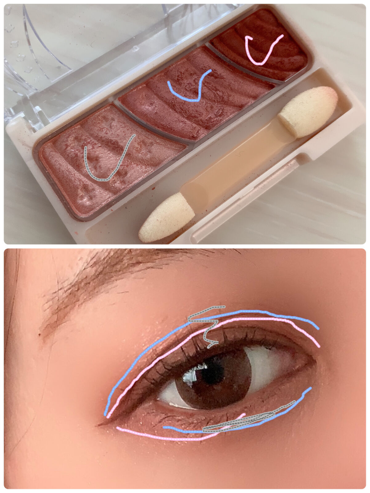- 3色で簡単に明るく大きな目元に。 しっとり感触のアイシャドウ。 くすみを飛ばす明るさベース、ひとえ・奥二重の方でも幅広く塗れる肌なじみの良い中間色、 濃密高発色の締め色が目の輪郭を強調し大きな目元に。 微細パール配合でくすみを飛ばし、明るい目元へ。