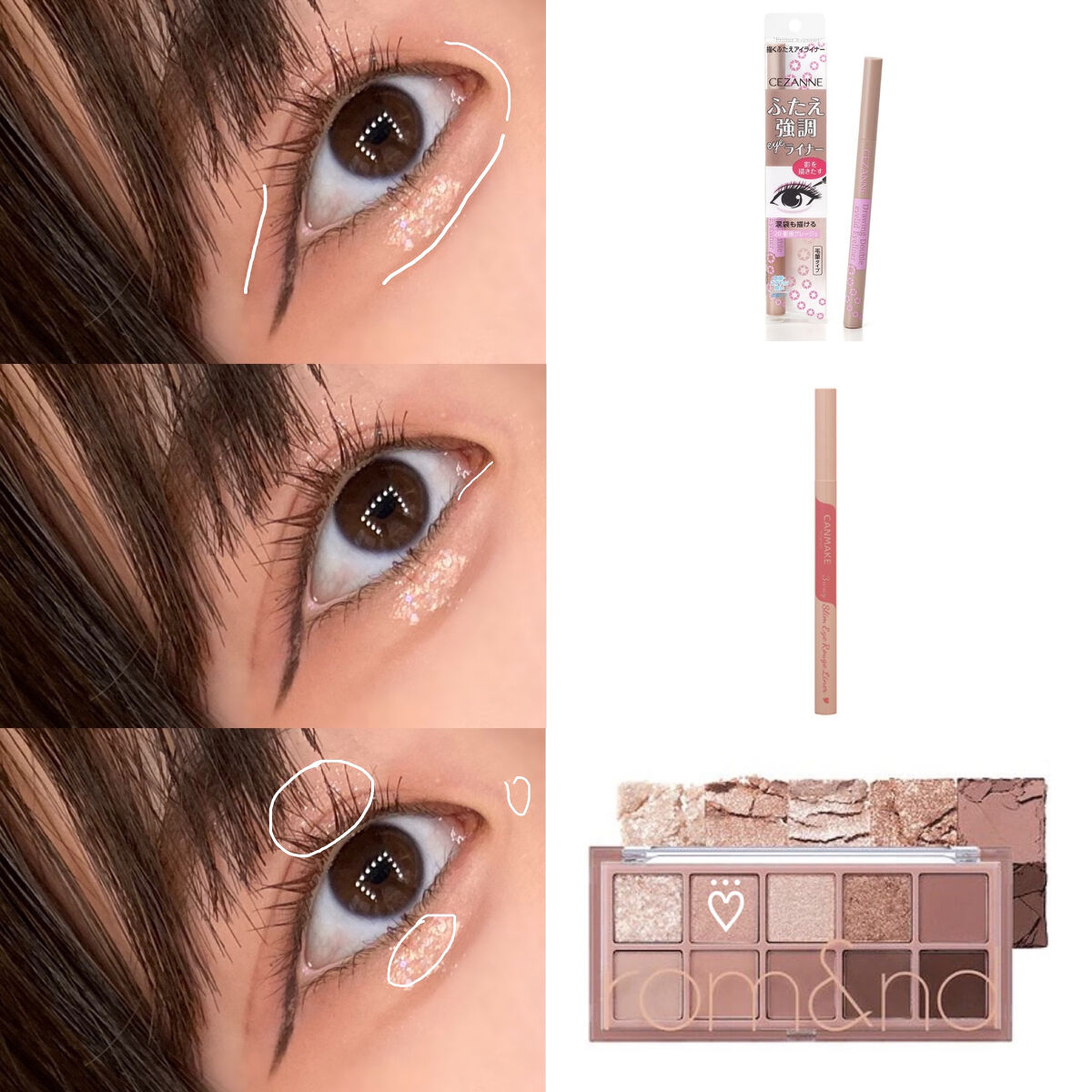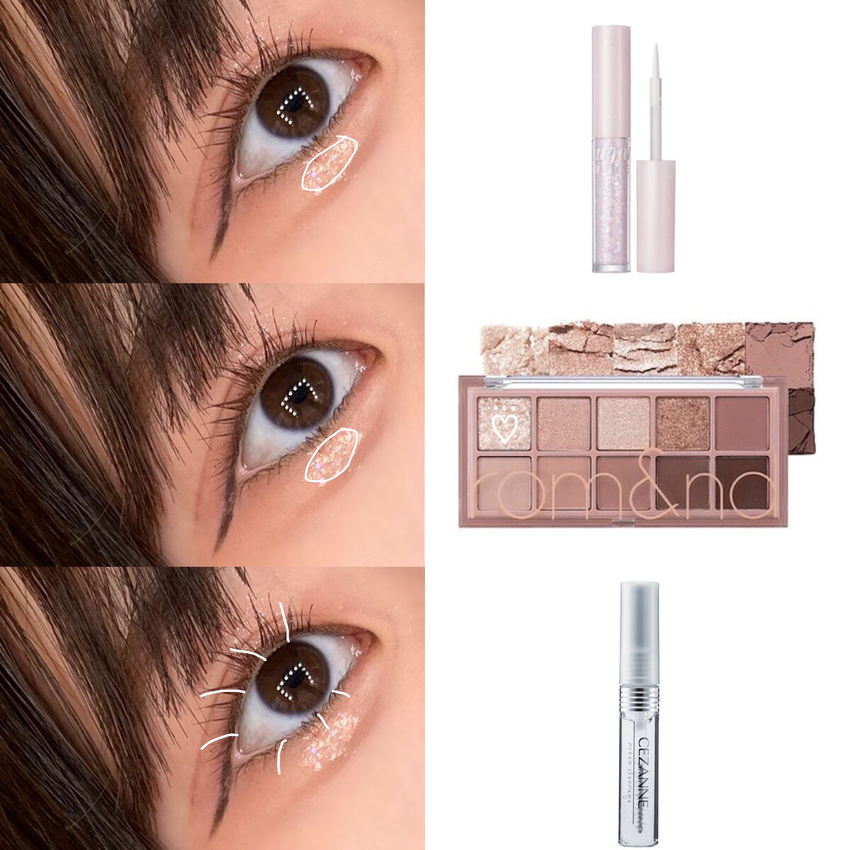 【 アイシャドウ 】CLIO プロアイパレット 13rom&nd ベターザンパレット 03 【 アイライナー 】キャンメイク クリーミータッチライナー 10CEZANNE 描くふたえアイライナー 20 【 グリッター 】PERIPERA シュガー トゥインクル リキッド グリッター 01 【 マスカラ 】CEZANNE クリア マスカラRCEZANNE セパレートロングマスカラ ブラウン 【 リップ 】rom&nd デュイフルウォーターティント 03