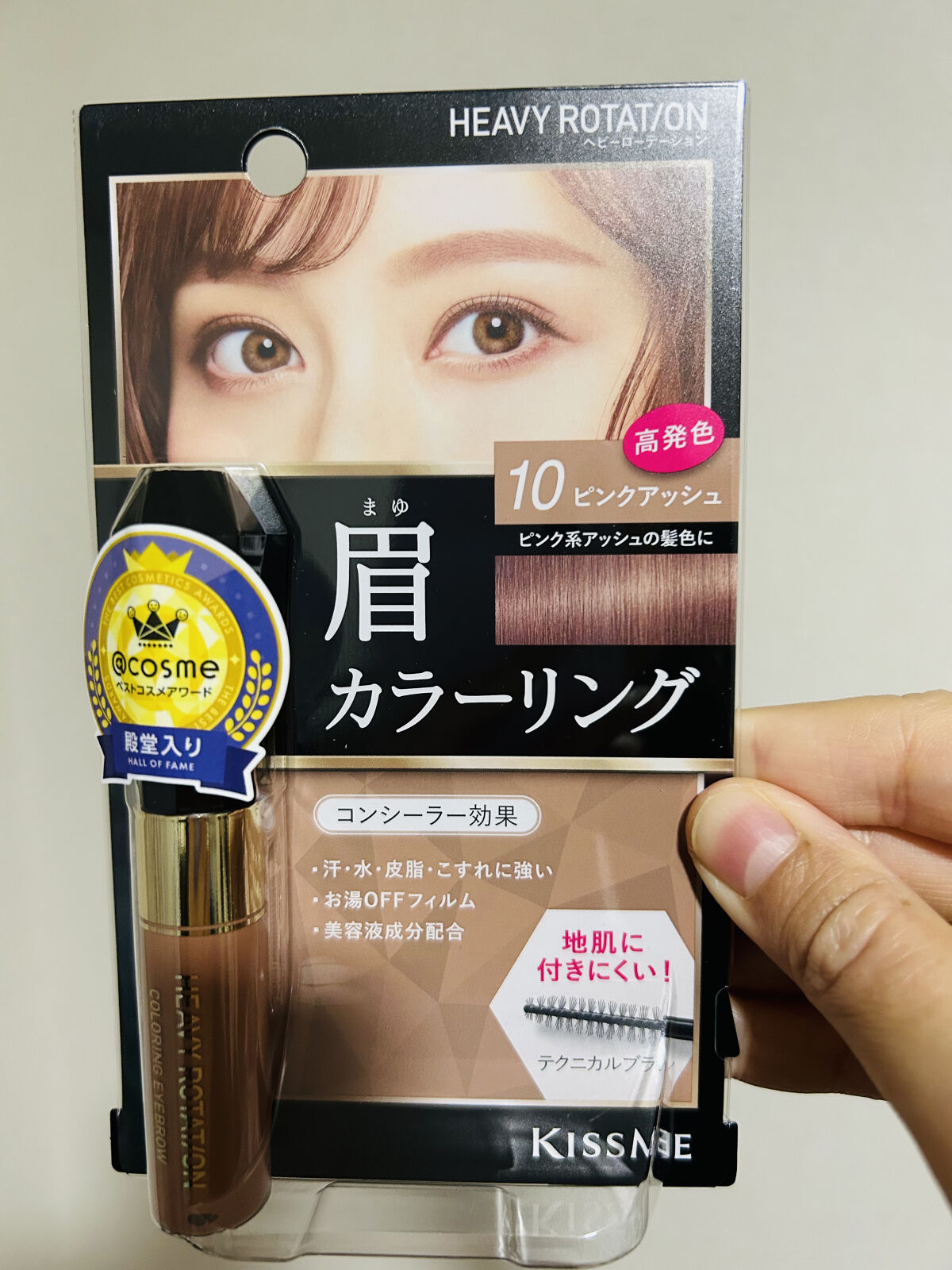 【ヘビーローテーションカラーリングアイブロウ¥924】キスミーの「ヘビーローテーションカラーリングアイブロウ10ピンクアッシュ」は、眉毛を自然に明るく整える人気の眉マスカラです。主な特徴は…?•カラー:10ピンクアッシュは、やわらかなピンク系...