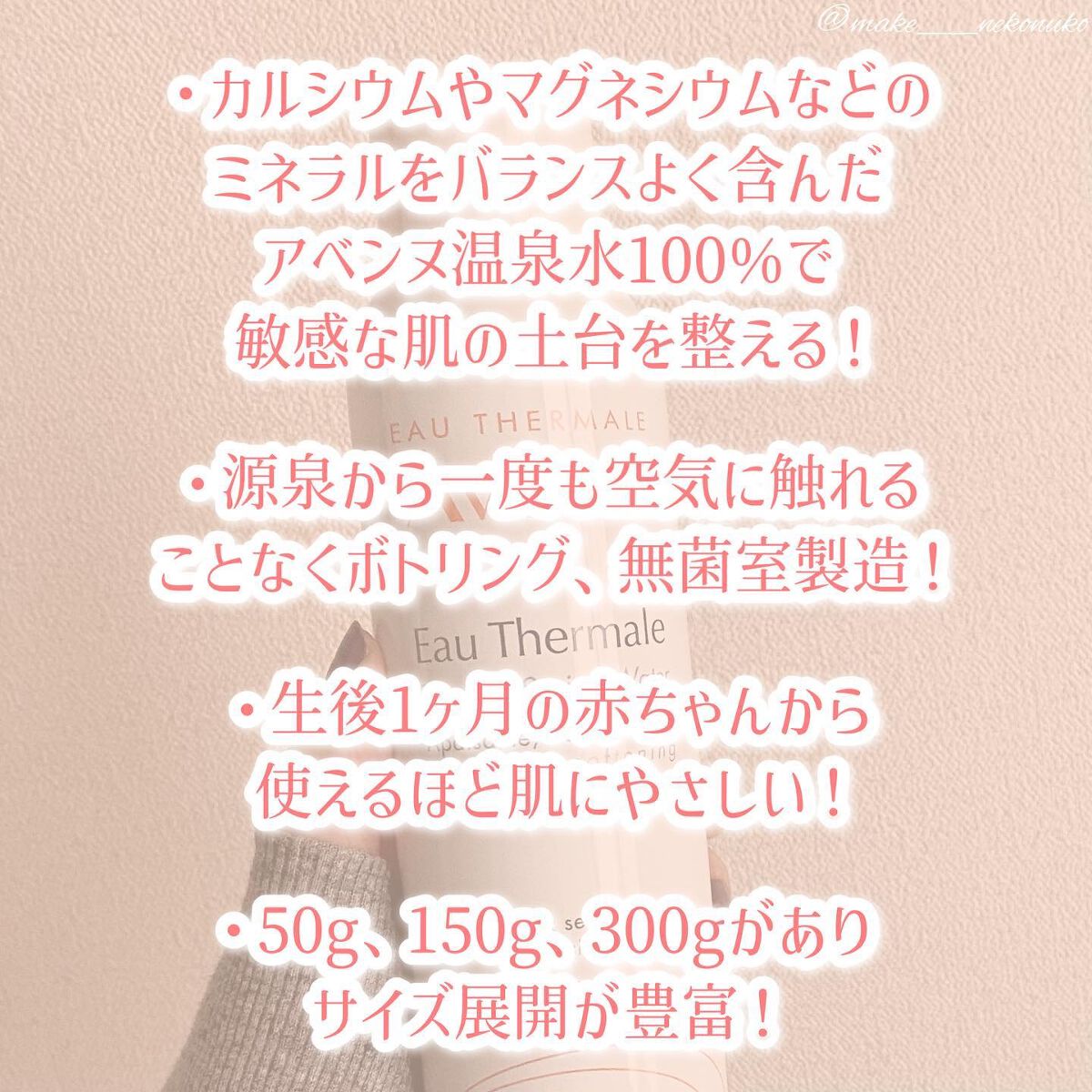 温泉水でお肌の深呼吸朝、顔洗ってすぐにシューッ。仕事帰りで肌カピカピな時にもシューッ。隙あらばシューッ。細かいミストだから涼しくてほどよく潤って気持ち良き🌊肌に良いことしてるな〜って思える><アベンヌ ウオーター 300g南フランスの温泉水1...