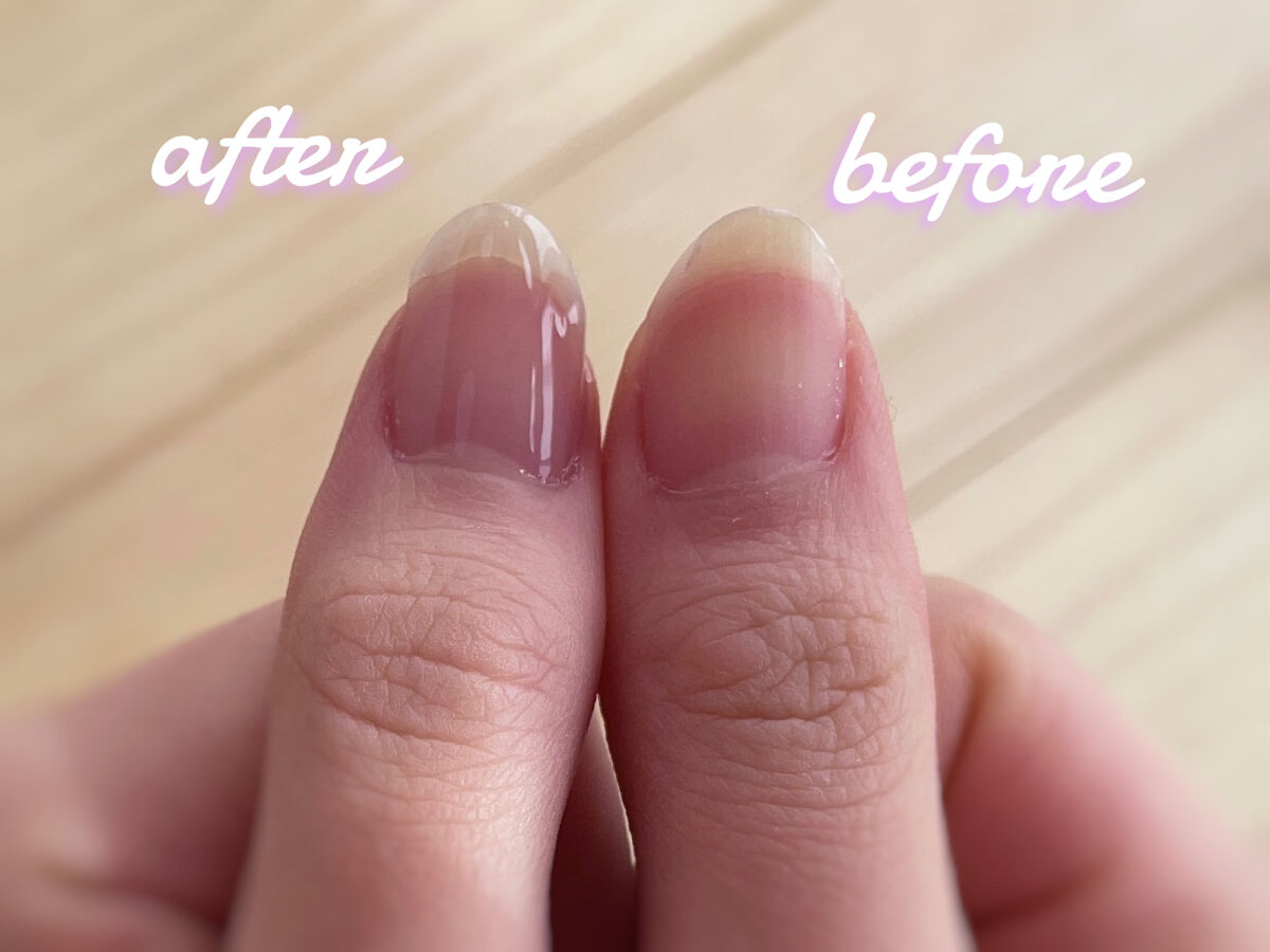 アルコール消毒にも強くヨレにくいという特徴もあります✨ むらさき色が補色効果によって爪の黄ばみをカバーし クリアーな美爪にみせてくれるみたいです💅 筆は広がるので1度に幅広く塗ることができて 塗りやすかったです💗 薄塗りで1分30秒ほど待てば触れても大丈夫そうで 塗って乾くまでが速く感じました! ツヤツヤとして表面もつるっとして綺麗に塗ることができました💗 これ1本サッと塗れば爪を綺麗にみせてくれるから 手軽なところがいいなと思いました💗 たっぷり入っているから長持ちしそうなので たくさん使っていきたいです♪