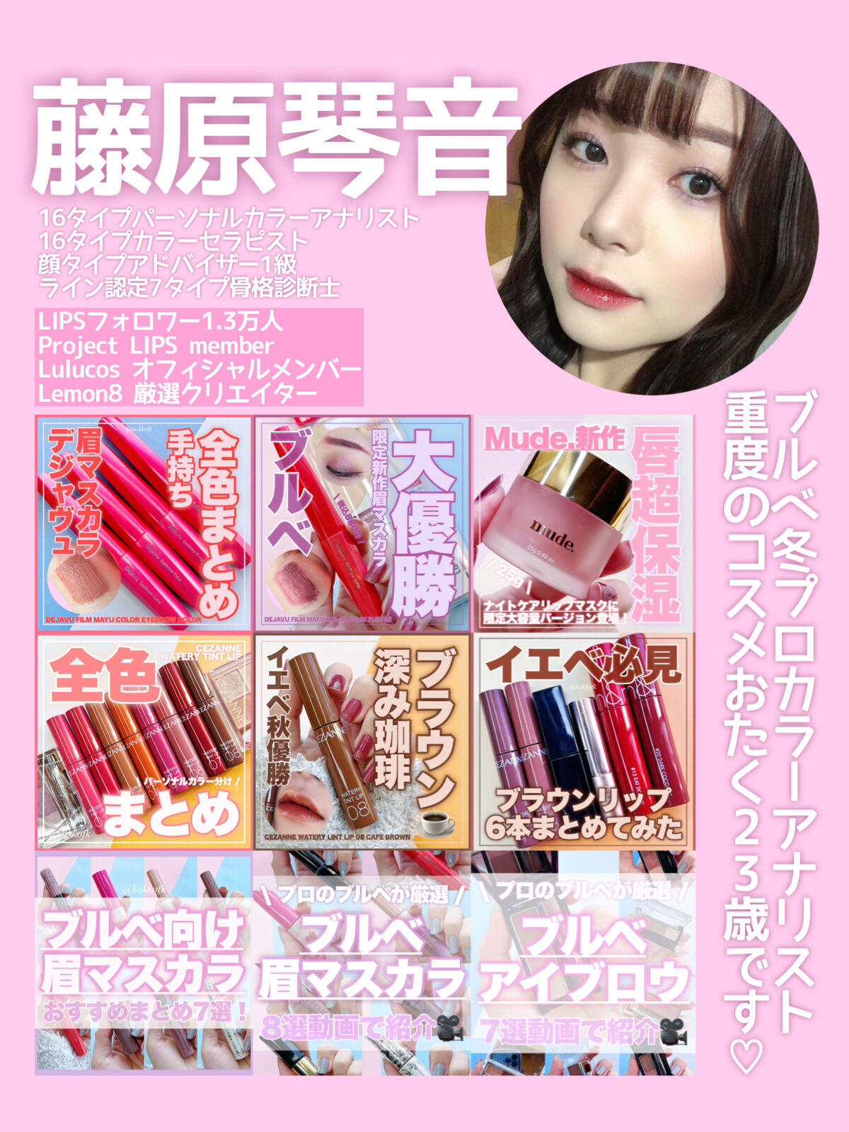 このバームはワセリンのようなとにかくうるうるの透明ツヤ感で、唇に負担なく薄づきの発色です💓 やや黄みの柔らかいヌードベージュ 明るさが得意なイエベ春におすすめ! 明るく澄んだ青みピンク 明るさが得意なブルベにおすすめ! やや黄みの澄んだコーラルレッド 2ndブルベのイエベ春におすすめ! 鮮やかで澄んだ青みレッド 鮮やかさが得意なブルベにおすすめ! 柔らかいくすみベージュブラウン 柔らかい色が得意なイエベにおすすめ! やや青みの柔らかいくすみレッド 柔らかい色が得意なブルベ夏に! しっかり青みのモーブピンク 1st2ndブルベにおすすめ!