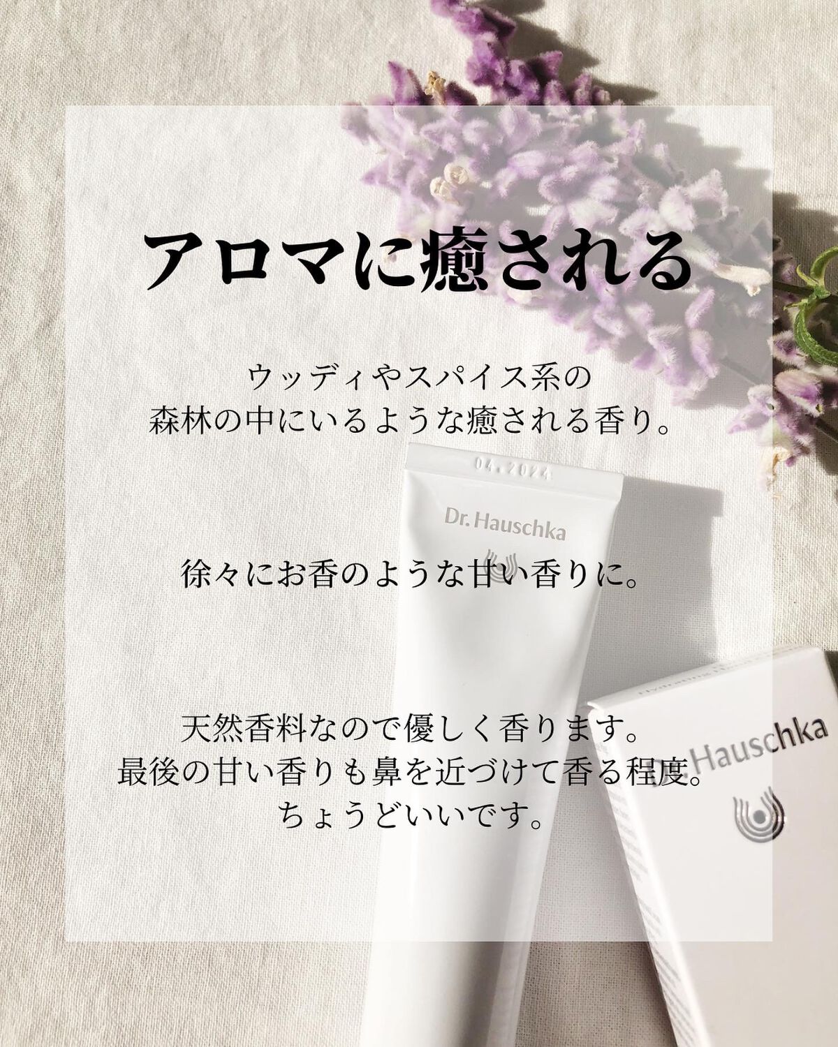 ドクターハウシュカハンドクリーム50ml塗った瞬間からサラッと馴染む、使用感抜群のハンドクリームです♪お高めなだけのことはあります💖香りはナチュラルなローズの香りです🌹キモチ青っぽいローズって感じです♪ハンドクリームしてすぐにスマホ触ったり作...