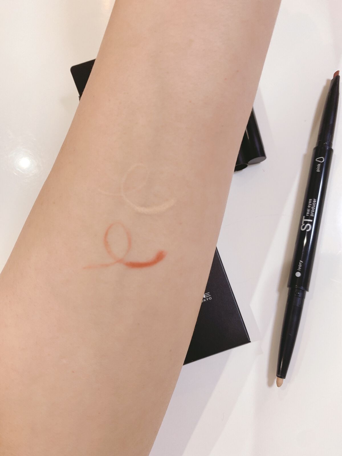 - 下まぶたにアイボリーカラーとニュアンスピンクカラーの2色を塗ることで、目幅を拡張し、白目を自然に大きく見せるWエンドの白目強調※アイライナー。 白目強調・たれ目強調・目幅拡張。 ※下まぶたへのメイクアップ効果による