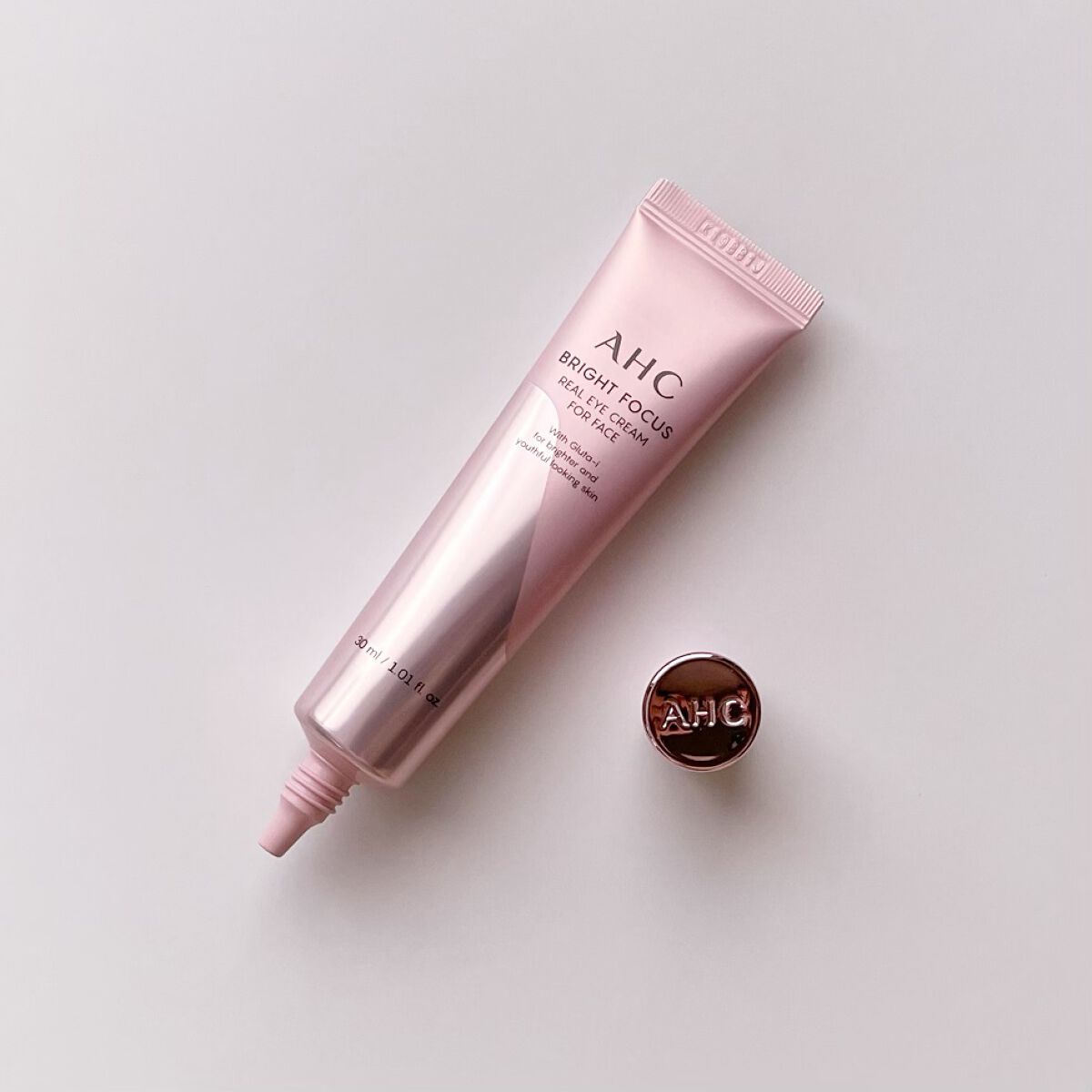 AHCのアイクリームは長年大人気の商品!目のまわりだけでなく、顔全体にも使用できるクリーム。 瞬間ツヤ効果!濃厚でありながら、さらっとした心地の良いテクスチャーでべたつきにくい仕上がり。 肌になじませた後、トーンアップしてほんのりツヤが残ります。アイケアってついついサボりがちになってしまうけれど、これは全顔にも使えるのですごく使いやすかったです♡