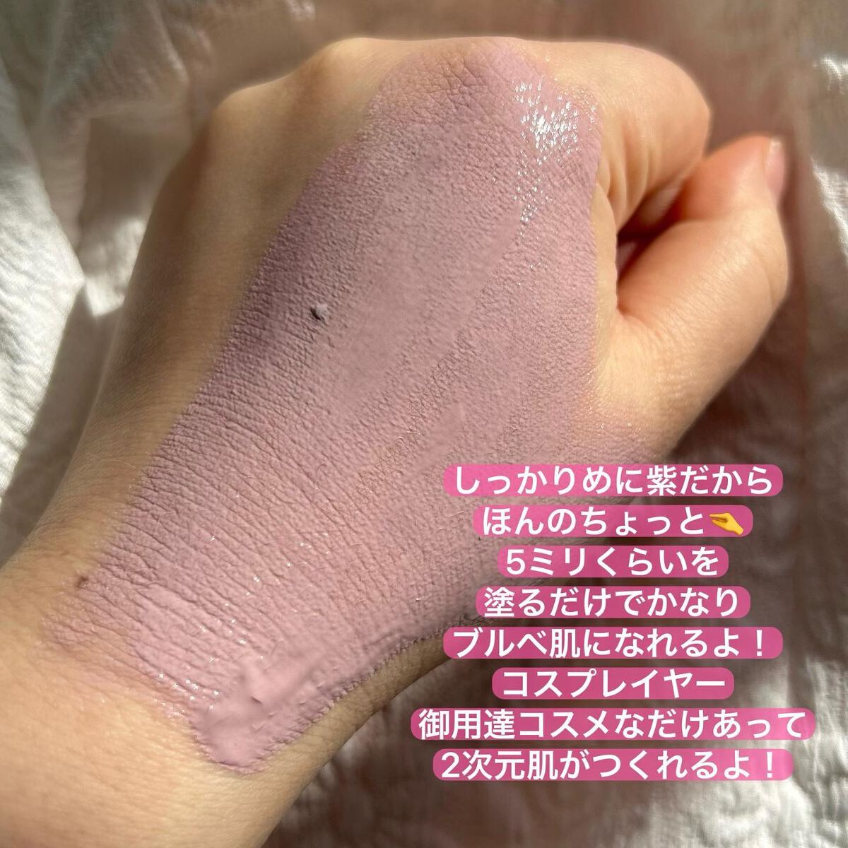 ライラックパープルのカラーが肌のくすみ・色ムラをカバーしながら、程よい血色感と透明感を与えお肌の色を補正してくれるそう✨ 肌作りにこだわるコスプレイヤーさんが絶賛してるって説得力ありますね🫢💓 COSCOSのカラーコントロールベースはメイクしながらしっかりお肌を守るスキンケア効果もあるので保湿力が高かったです🫢🌟🌟