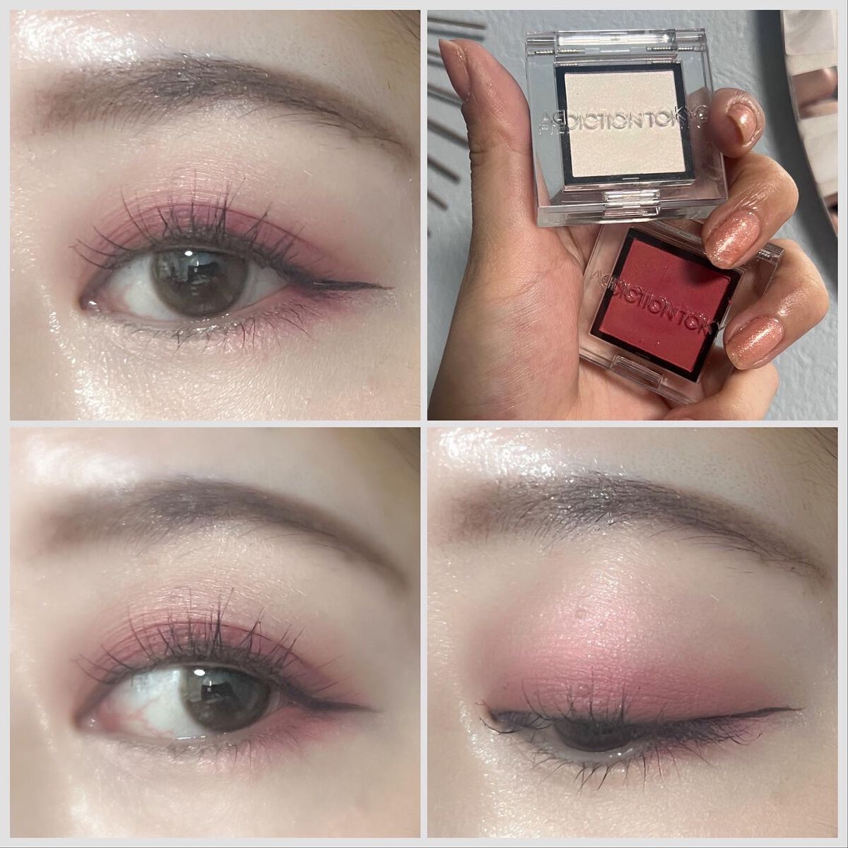 ボビイブラウンの名品ムーンストーンはベースがクリアなのでどんなアイシャドウにも合わせられるし上からトッピングするのにも向いています。 アディクションのマリアージュは2,200円でこの煌めき! 一番安いのに一番輝く、さすがです。 秋蛍は実はトッピングするとベースのシャドウを殺してしまうので目頭、下瞼などポイント使いかベースに使うのがおすすめです。