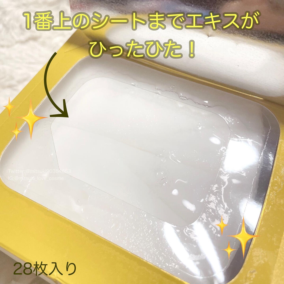 | やわらかい感触のシート♪ たっぷりの化粧水が含まれているのが分かるくらい うるうるしています😊 | 詳細を見る | |