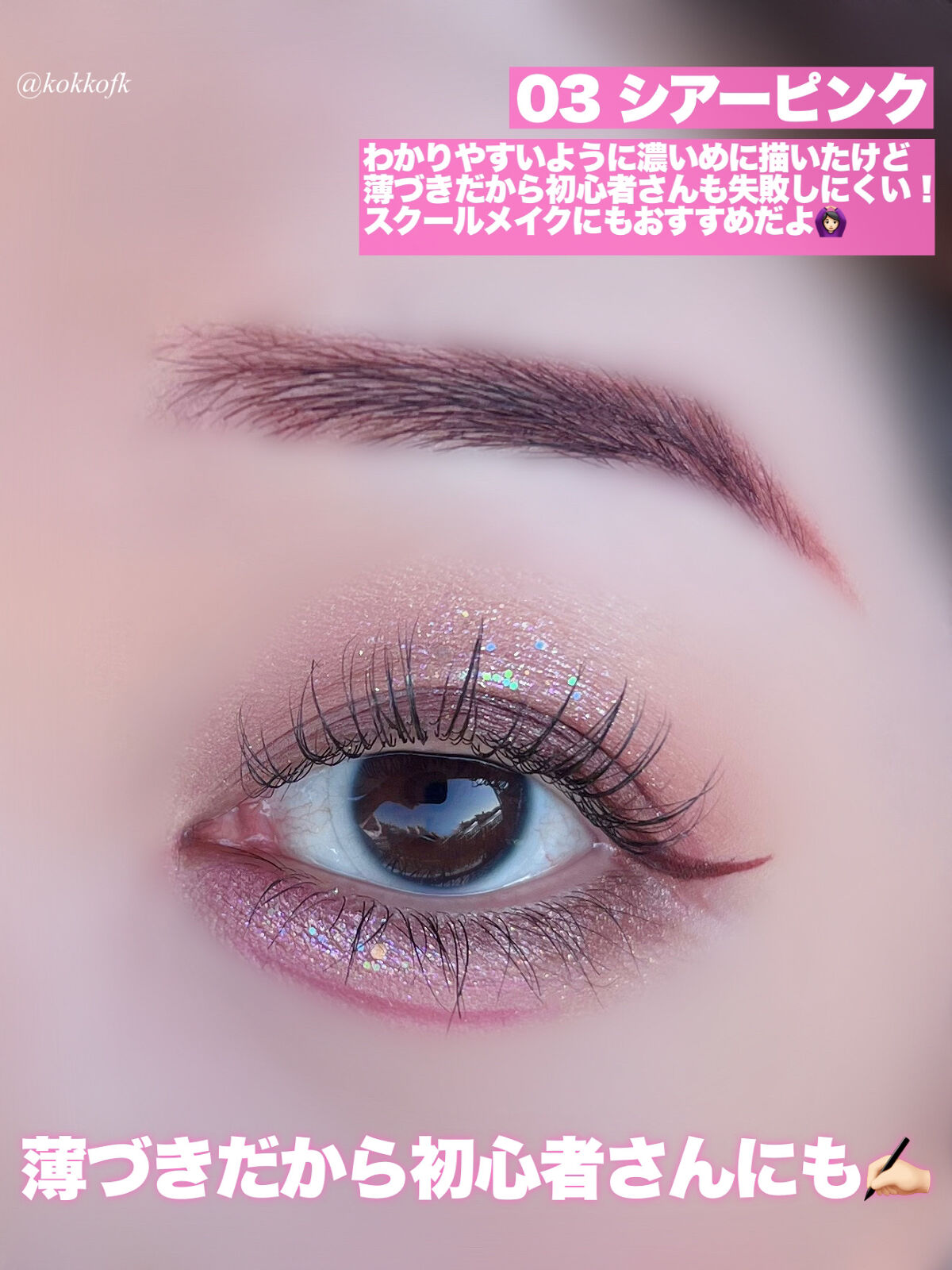 - ふたえ強調・涙袋の影・アイプランパー効果(※)に使える 激細筆の目元用透けルージュライナー 自然でリアルな血色を叶える、絶妙な透け発色ライナー♥ まるで目元にルージュを塗ったかのように血色感を与え、かわいい印象に仕上がります。 描いた線が太くならないよう、筆を根元から細くして 描きやすい距離と適度なコシになるように、短い筆に仕上げました。 汗・皮脂・こすれに強く、朝描いたラインも長時間キープされます。 (※メイクアップ効果による)