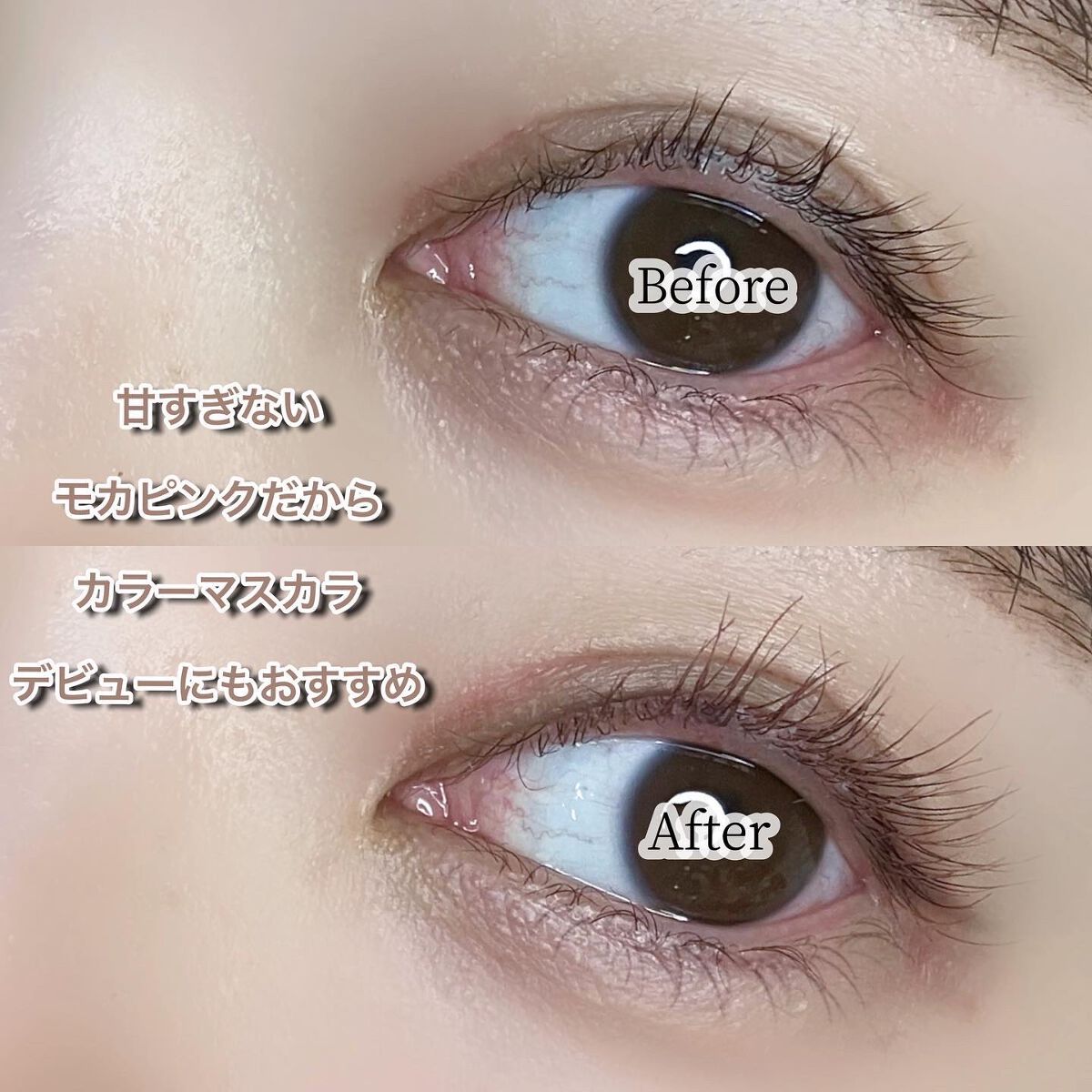 美容液マスカラ。パケが可愛い♡ 長さが違う2種類の極細ファイバーが入っています。 モカピンクは落ち着いたピンク色なので使いやすかったです🫶 全7色展開 ブラック ピンクブラウン モカピンク ミッドナイトネイビー サンセットオレンジ ディープボルドー ディープオリーブ