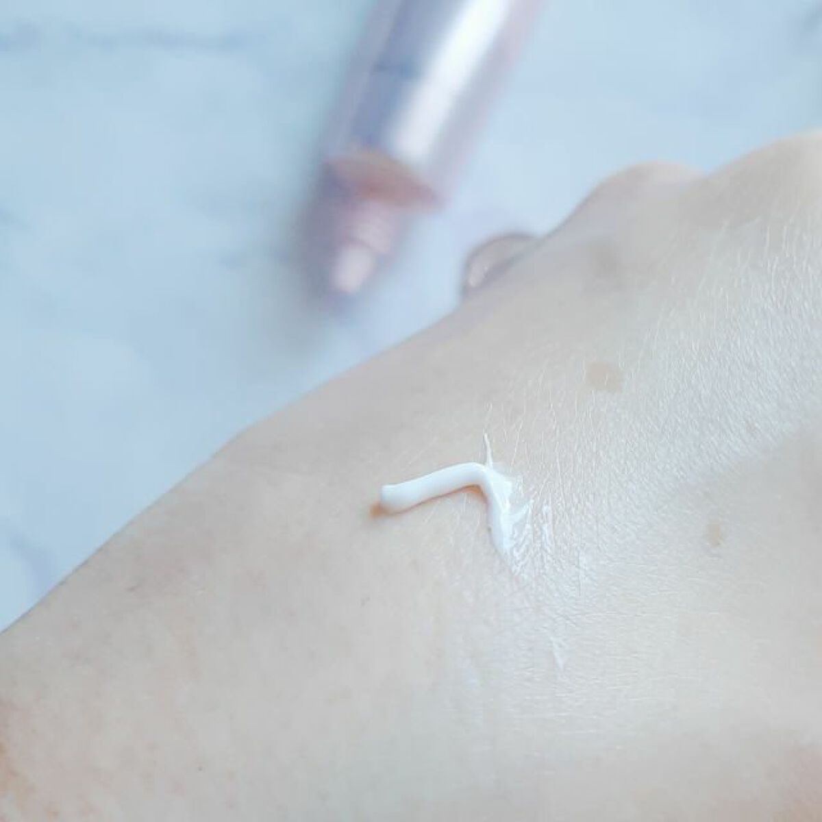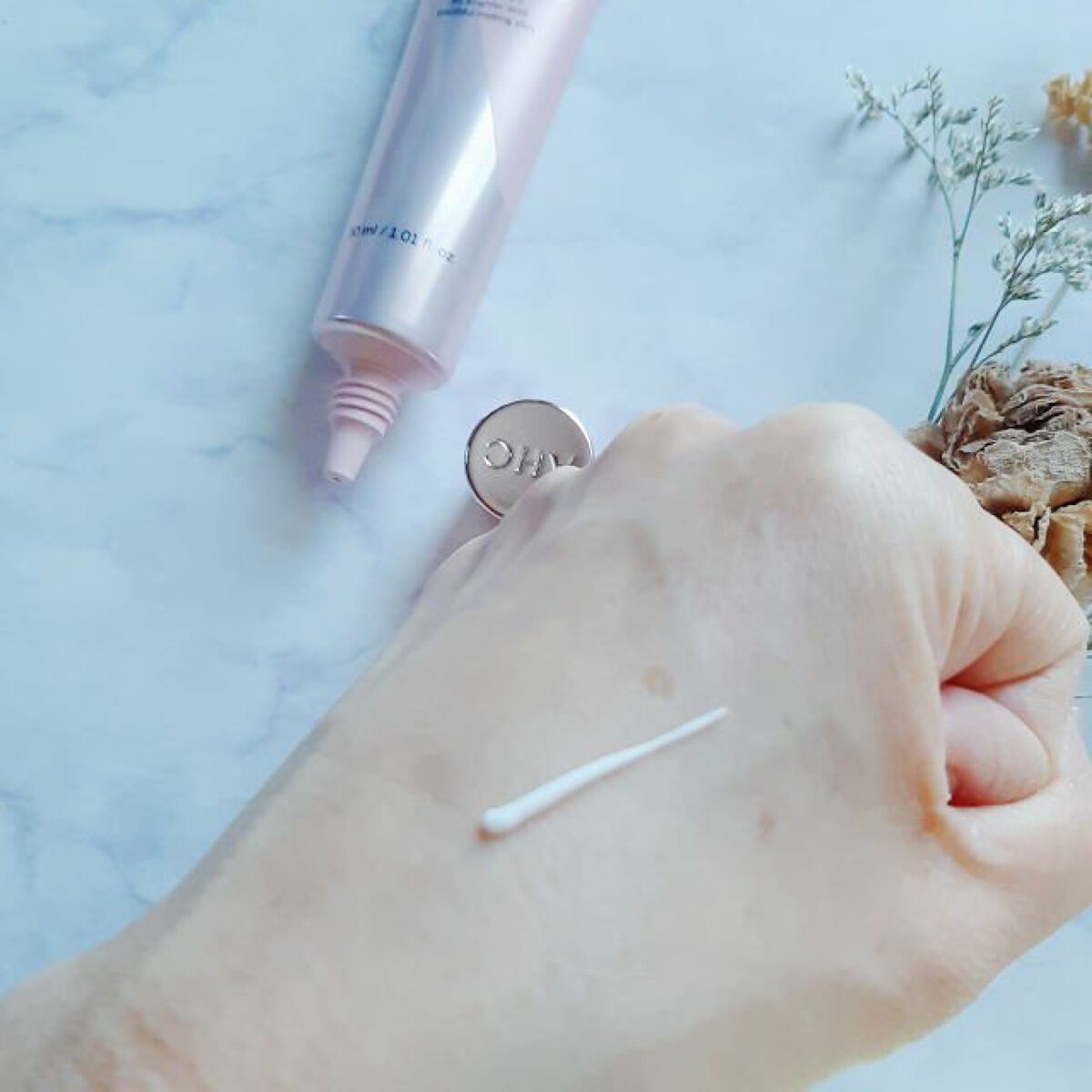 肌にうるおいを与え、明るい肌印象へ。肌をなめらかにし、なじませた直後からツヤのあるお肌へ導いてくれるそう。 目元だけでなく顔全体にも使えるとのこと。 こちらはそれよりもこってりとした印象ですが、なめらかに塗れてベタつかず、アイクリームの独特のペタペタ感がなくて使いやすく感じました。