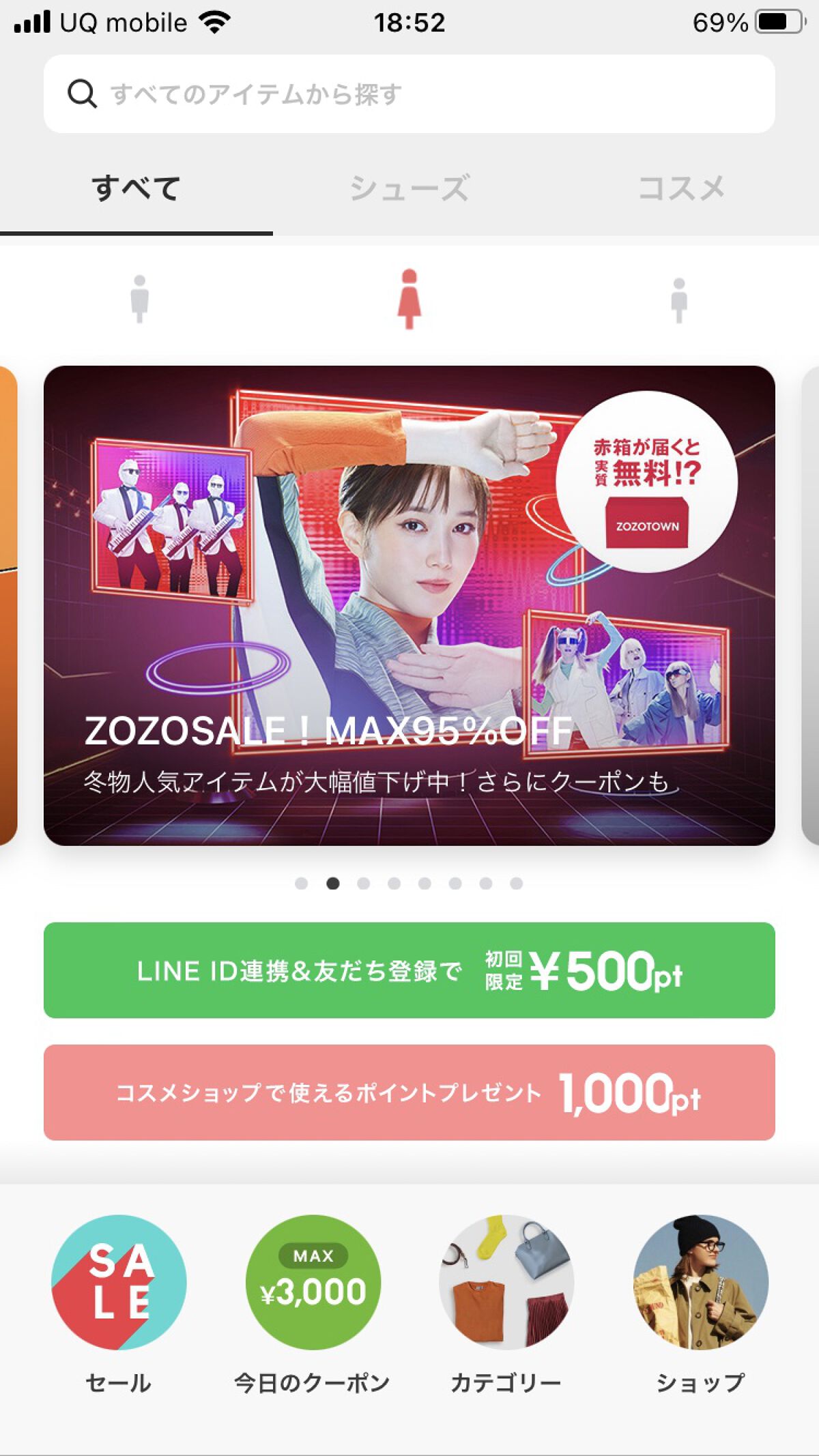 ZOZOポイント来てるぞ1000円分250円送料かかるけどな受け取ってこい...