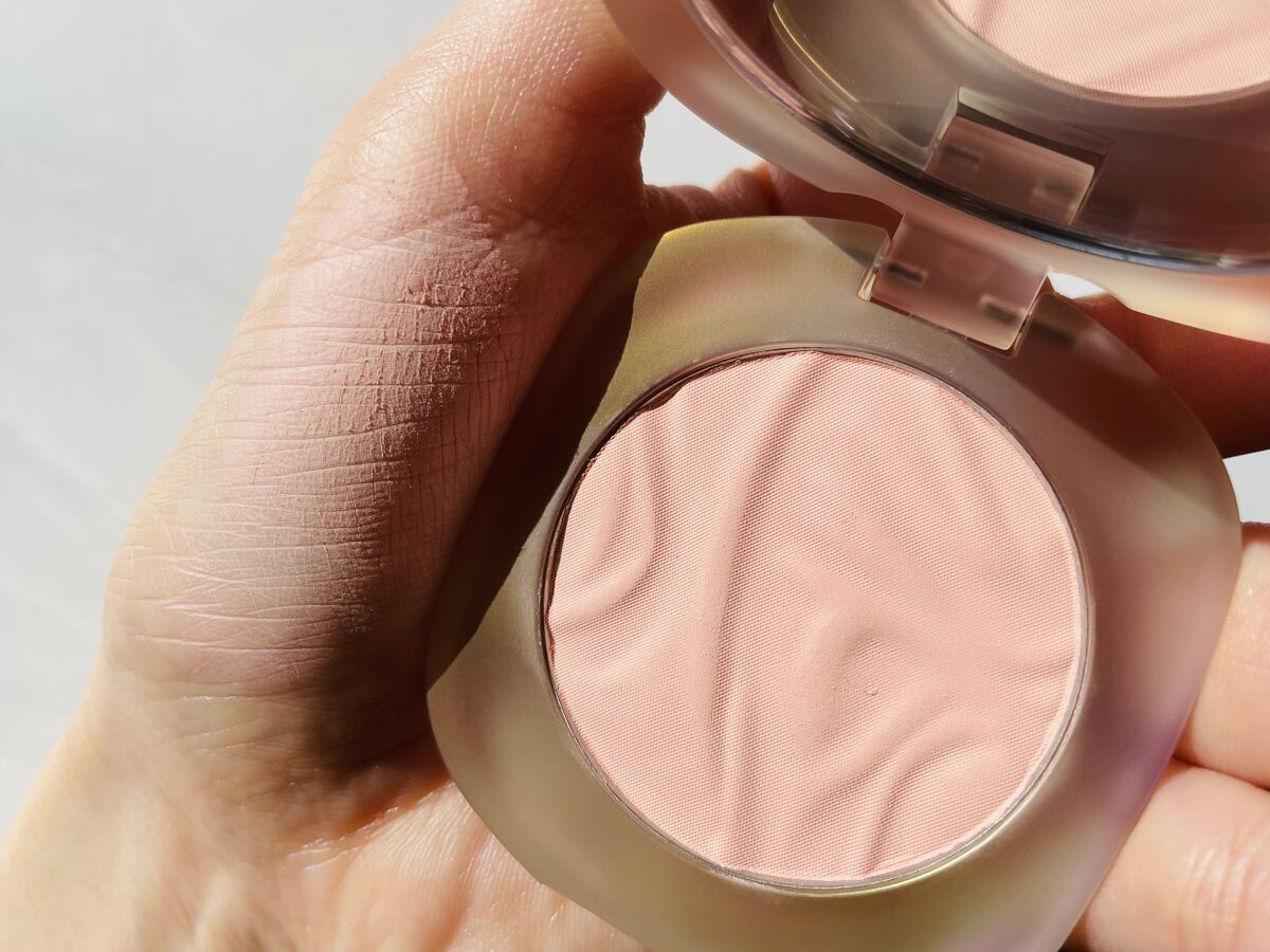 Joocyeeは質がいいのはもちろんですが、何よりもパケが綺麗でテンションが上がります! こちらのチークはマットだけれど、粉っぽ過ぎずしっとりとしています。 ハイライトを使ってポイントでキラキラさせたいので、チークにはラメやパールが入っていないほうが好みの私的に、とても使い勝手がよく感じました。 モーニングミストの色味は、淡くミルキーでありつつ、肌なじみのいいピーチなので使い勝手もとても良かったです。