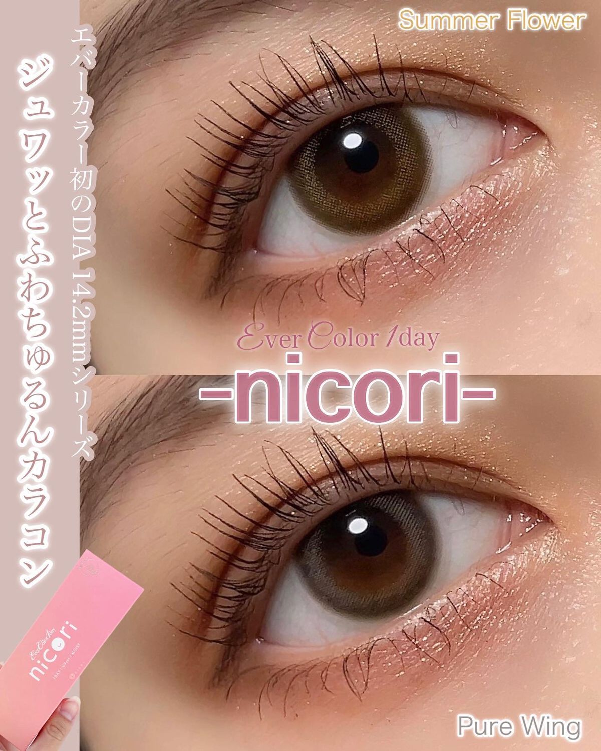 💐木漏れ日に照らされて💐ふんわり柔らかい発色うるっとさりげなベージュエバーカラーワンデーニコリサマーフラワー感想𓃟うるっとした発色で、内側のベージュがハイライトのような光の入り方をしてくれるので、写真映えするカラコンでした!ナチュラルでふんわ...
