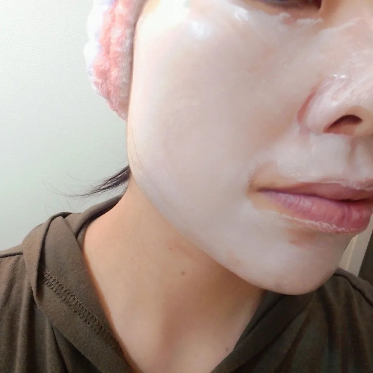 中身はややピンクみのあるクリームに丸い粒々☺️ 乾いた状態のお肌に全体的に塗るんですが しばらくすると自然に発泡してきて細かい泡が こちらメイク落としも洗顔も出来て😊 洗いながしたあともお肌につっぱる感じもないです💓 アジア人のお肌に合う本草レシピで開発 100%天然洗浄成分&35種類の本草穀物成分で 作られているんだとか☺️❤️ 個包装タイプは持ち運びしやすくていいですよね😊👍