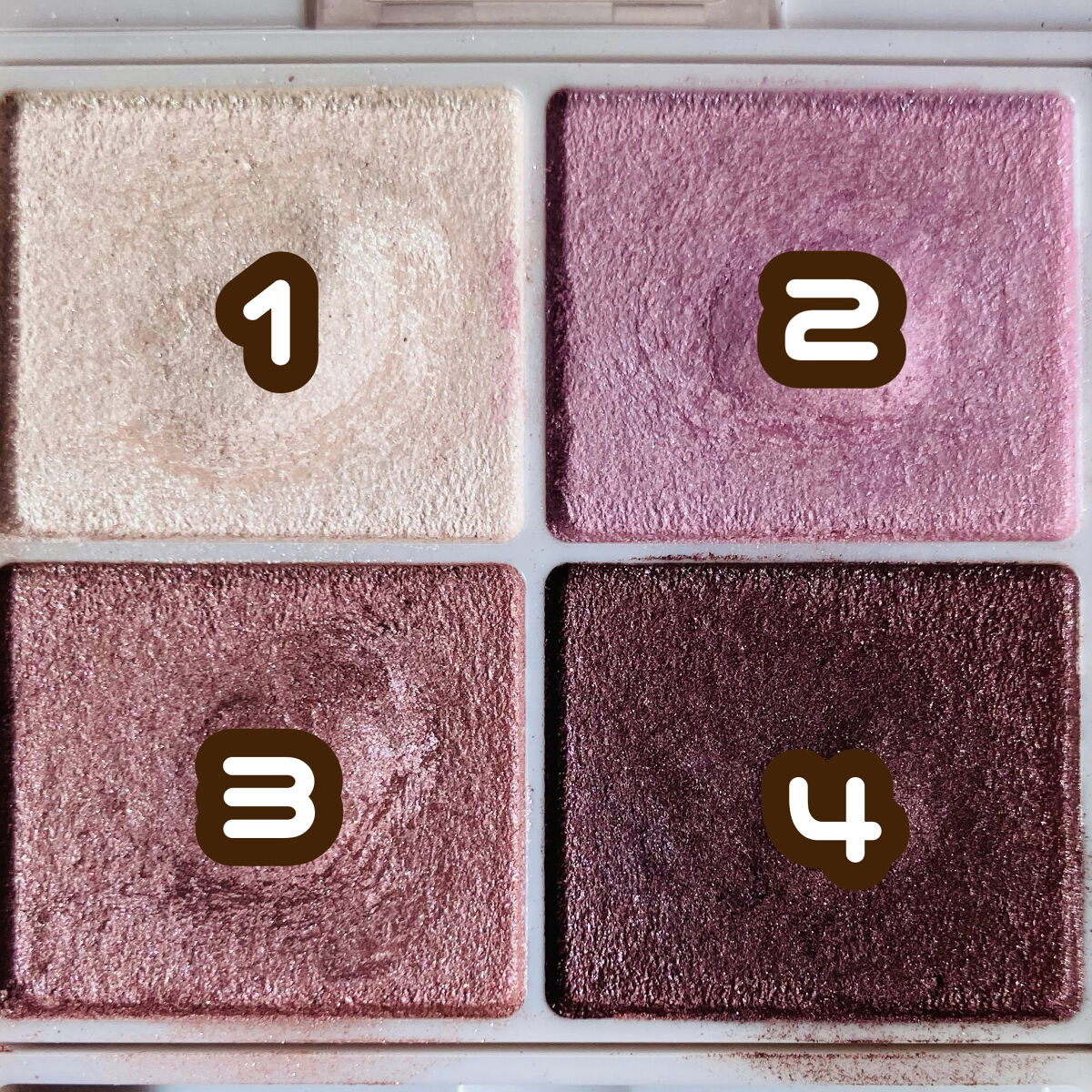 暫く使ってなかったのですが、コスメの断捨離をしていた時に見つけました✨ 9色入ってたったの100円(税抜き)! しかも捨て色なし!1色約11円! ダイソーさんすごすぎませんか、、😭😭 使ってみた感想としましては粉飛びがすごいです🥲 ですが超お安いので許せちゃう😹 気になる点といえば、発色がいい色と悪い色の差が激しいです💦 画像2枚目の1の色の発色がすごい良くて濃すぎるくらいなのに比べて、4がとにかく付きませんでした😣 調べて見たところ、粉飛びや発色の良さは当たりハズレ個体差(?)があるようです🤔 100円だし、、安いし、、と思いましたが、やはり発色が良すぎたり逆に悪すぎたりするのは調節が難しかったので星3です💧