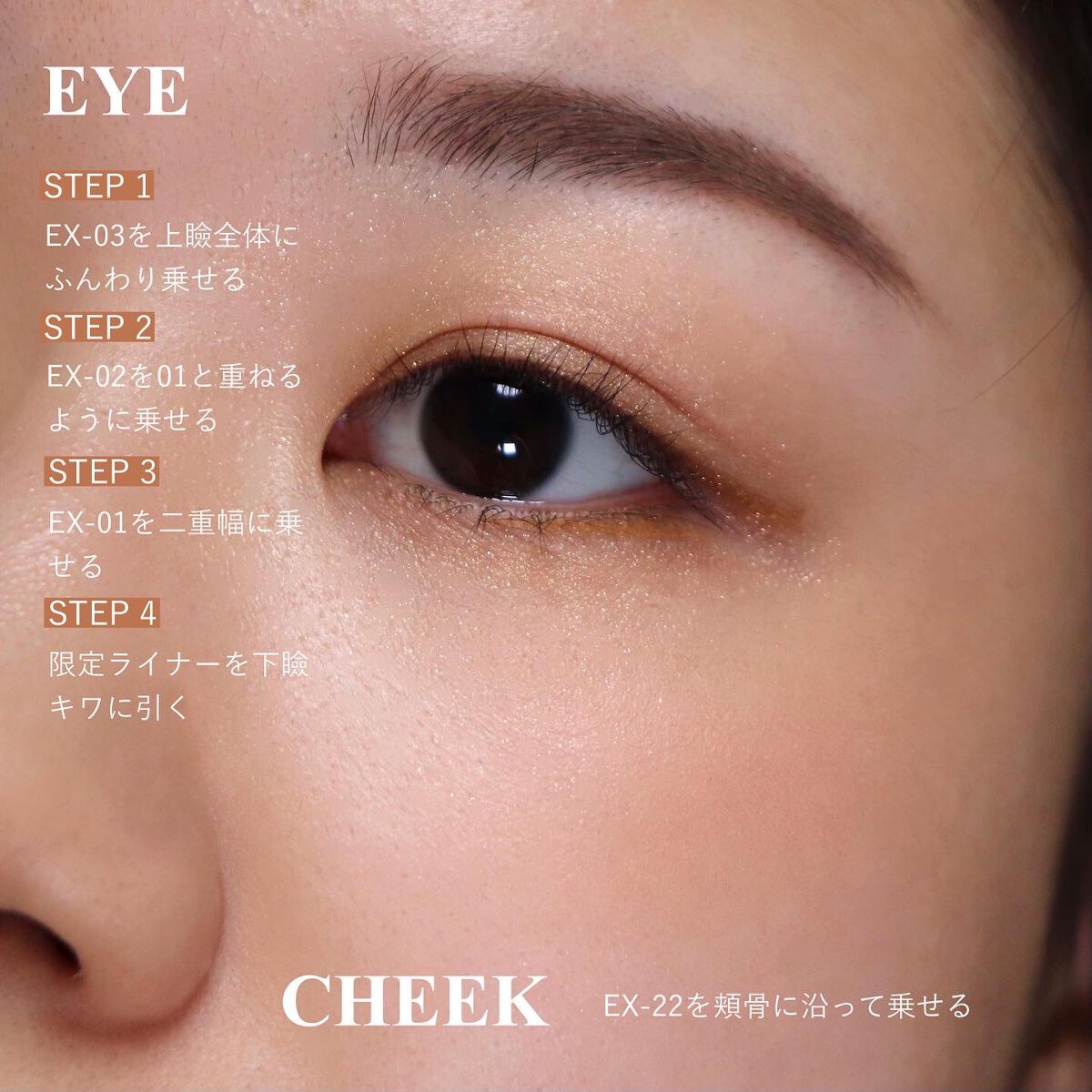 肌馴染みの良いベージュを基調とした配色です。 ラメ・パール・マットの異なる質感の組み合わせ ナチュラルに彩り、立体感のある目元に仕上がります。 保湿成分であるスクワラン・ホホバ種子油を配合 しっとりした柔らかいテクスチャーで高密着。 スウォッチを見ていただければ分かるように、とにかく肌馴染み抜群! 目元に溶け込むような仕上がりです。 ふんわりした質感で目元のアラが見えにくくなりました。 01と02はオレンジ感とピンク感の多少の違いがある程度です。 個人的には左上のラメの質感やカラーがとっても好きです