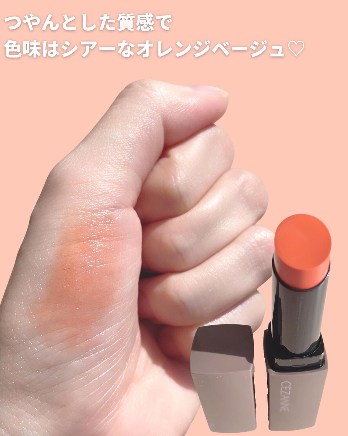 【CEZANNE リップカラーシールド 02:オランジュベージュ、03:ココアブラウン】セザンヌのリップカラーシールドは、テイントじゃないのに、色も艶も落ちにくいと噂になっていて、ようやく購入。ヘルシーで抜け感のあるオレンジ系ベージュカラーの...