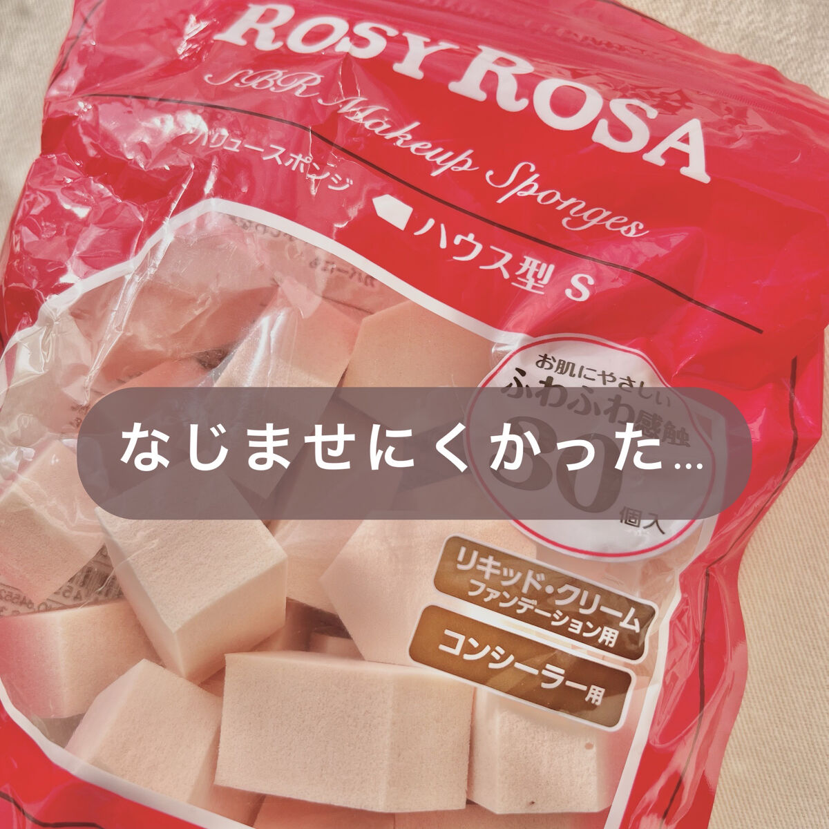ロージーローザのバリュースポンジN ハウス型タイプS 30Pは、角がたくさんあるので、細かいところから広いところまで、綺麗にメイクできますよ。 さわり心地が気持ちよくて、ふわふわなので、肌にも優しい感じがします! 洗うのめんどいし、毎回綺麗なスポンジでメイクするのがいいので、使い捨てを選んでいます。