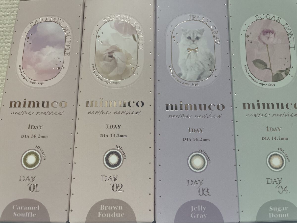 - ※2025年6月以降、商品パッケージ裏面・側面の一部表記を順次変更いたします。尚、これにかかる商品の交換・返品は承っておりません。 裸眼の色が明るい「茶目さん」、暗めな「黒目さん」、どちらの瞳の方が着けても不自然にならずあか抜けるレンズ。 日常使いしやすいブラウンベースのレンズをはじめ、肩ひじ張らずに可愛くなれるナチュラルなレンズとなっております。 ■mimuco ふんわり透明感セット キャラメルスフレ/ブラウンフォンデュ/メープルミルクティー/ポムカヌレ(各2枚入り) ■mimucoちゅるん透明感セット ゼリーグレー/シュガードーナツ/メローストロベリー/ピュレグレージュ(各2枚入り) カラーコンタクトレンズの不適正使用による眼障害の危険性等などがあります。 ●コンタクトレンズは高度管理医療機器です。不十分な洗浄・消毒など不適切なケアや、長時間・交換期間を超えた装用により、アレルギー性結膜炎、角膜感染症、角膜潰瘍等の重篤な眼障害が発生する危険性があります ●ご使用前に取扱説明書を確認してください 使用上の留意事項 ●眼科医院等を受診してからお求めください ●眼に異常を感じたら直ちにレンズ使用を中止し、お近くの眼科等で診察を受けてください ●医師の指示にしたがってご使用ください ●コンタクトレンズを装用する場合、自覚症状がなくても、眼科医院等での定期検査を受けてください ●レンズに不具合がある場合は使用しないでください
